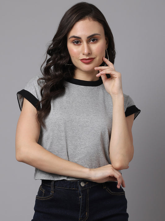 Friskers Women Solid Ribbed Round Neck Crop Top