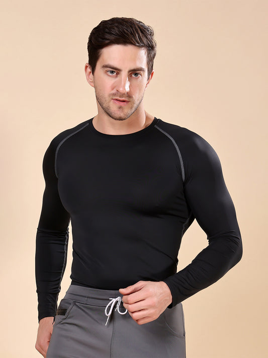 Mens Black Round Neck Polyster Compression Gym Tshirt