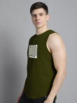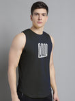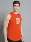 Men's Lets Rock printed Pure Cotton Training Vest has a round neck, sleeveless