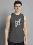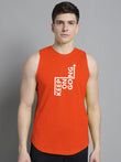 Men's Lets Rock printed Pure Cotton Training Vest has a round neck, sleeveless