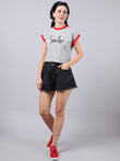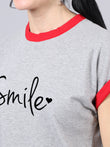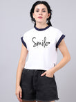 Fbar Women's Smile Printed Cotton T-Shirt