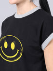 Fbar Women's Smiley Printed Cotton T-Shirt