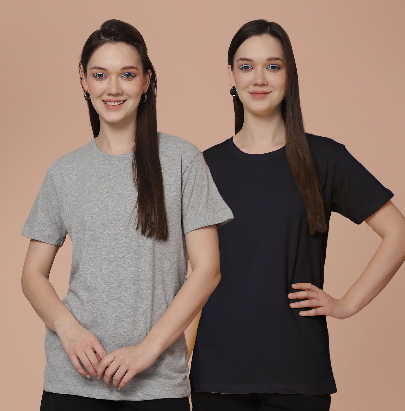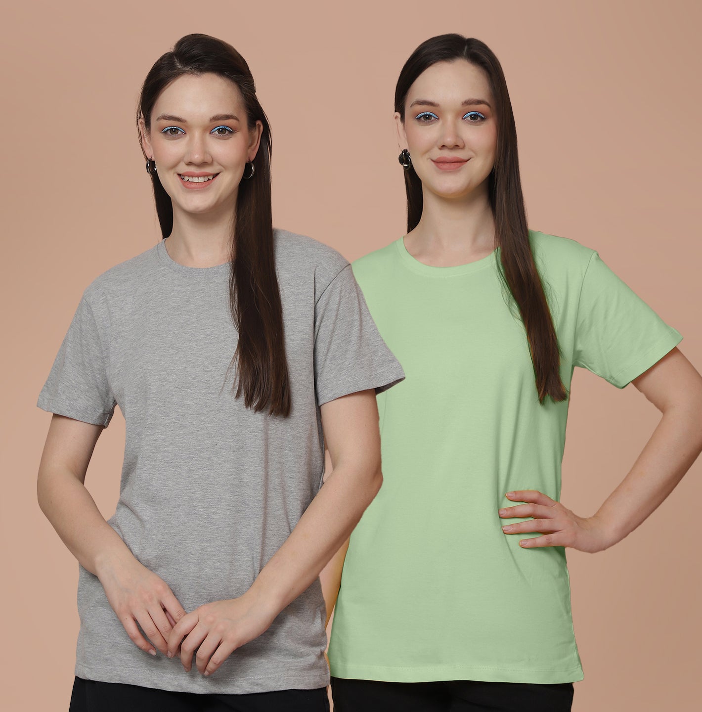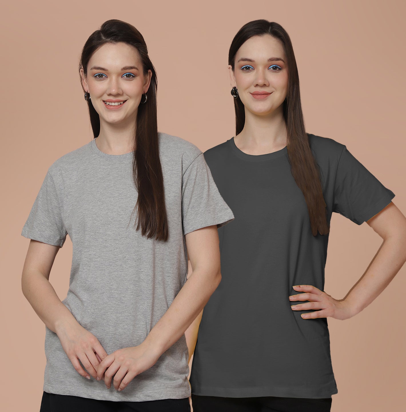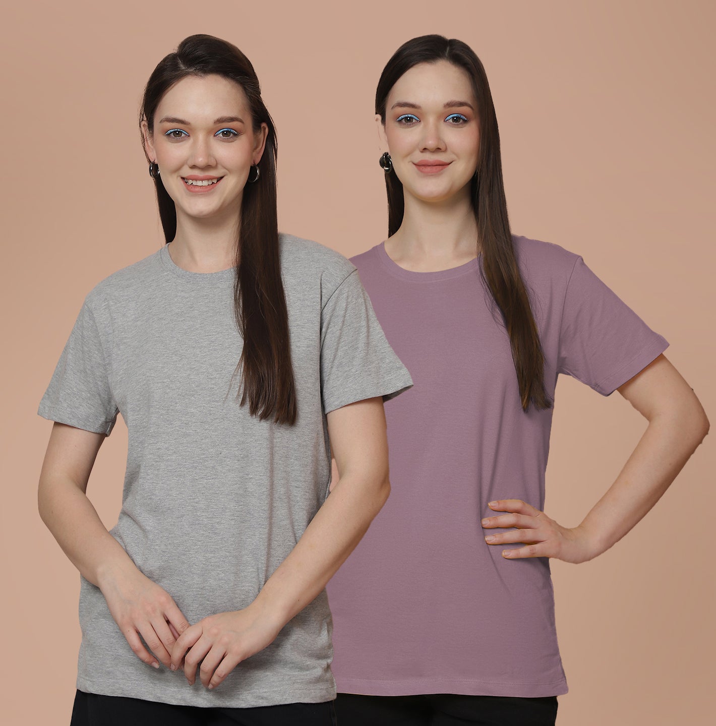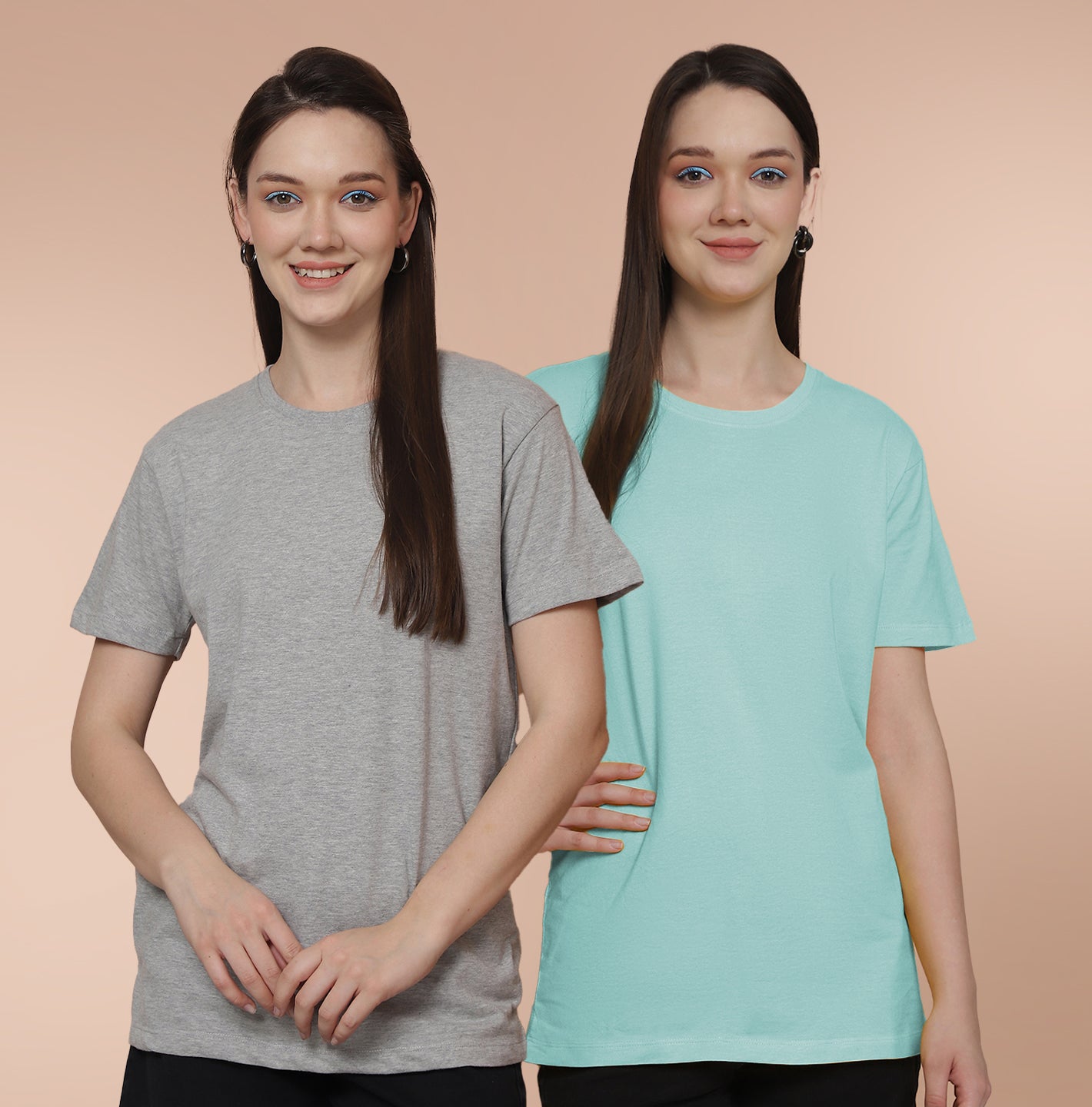 Friskers Pack Of 2 Grey Combination Round Neck Half Sleeves Long T-Shirt