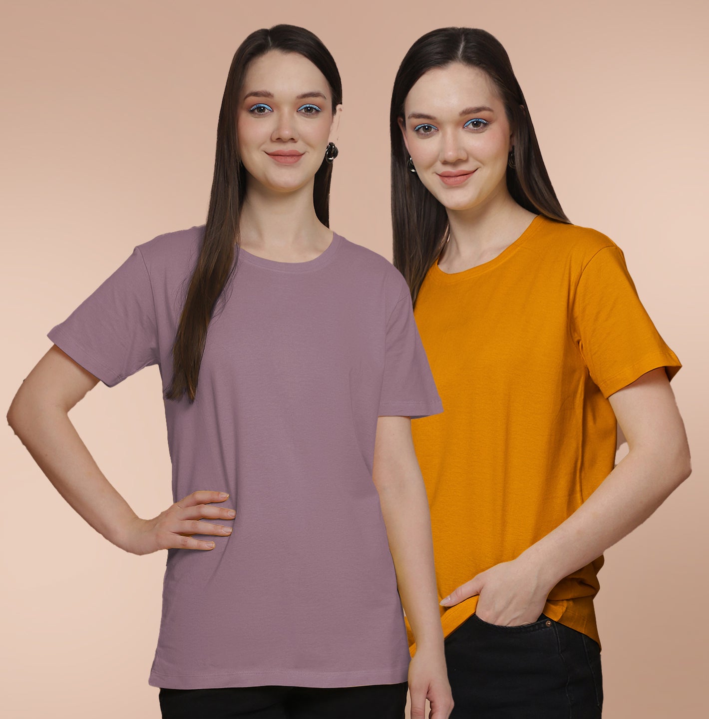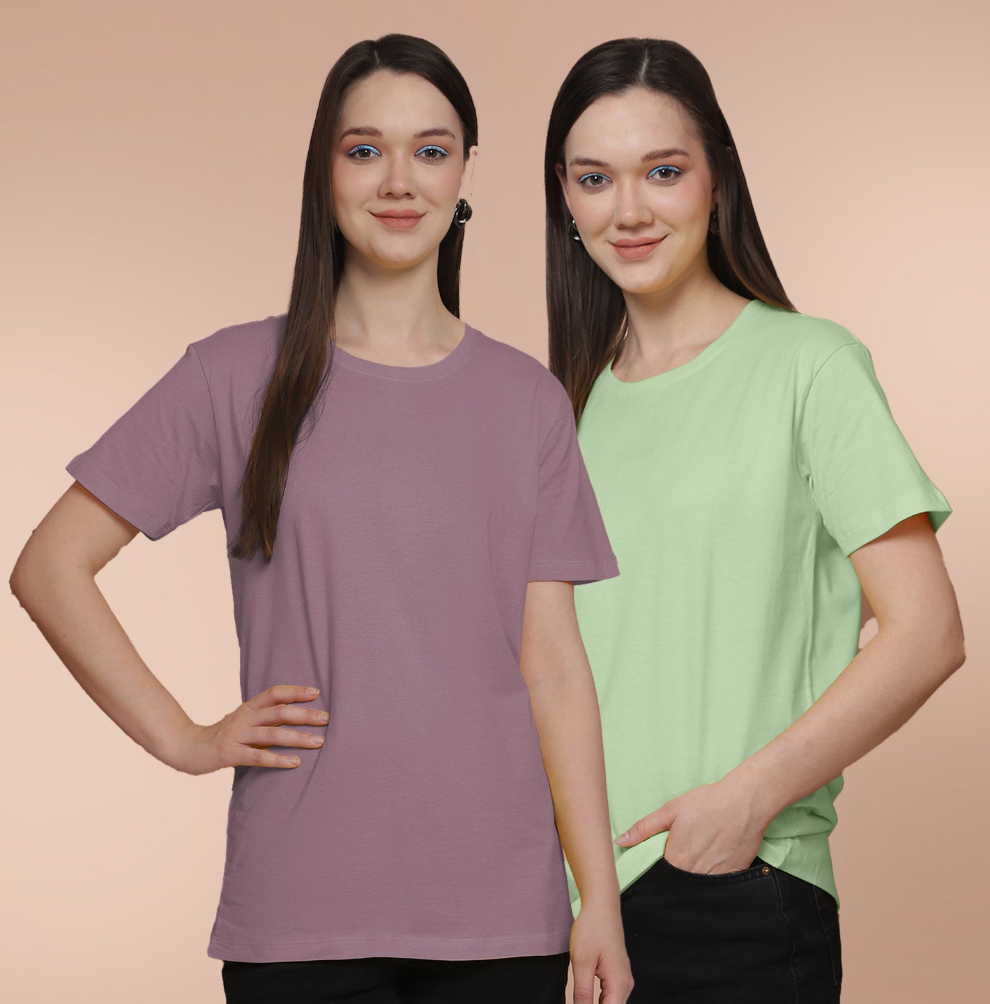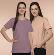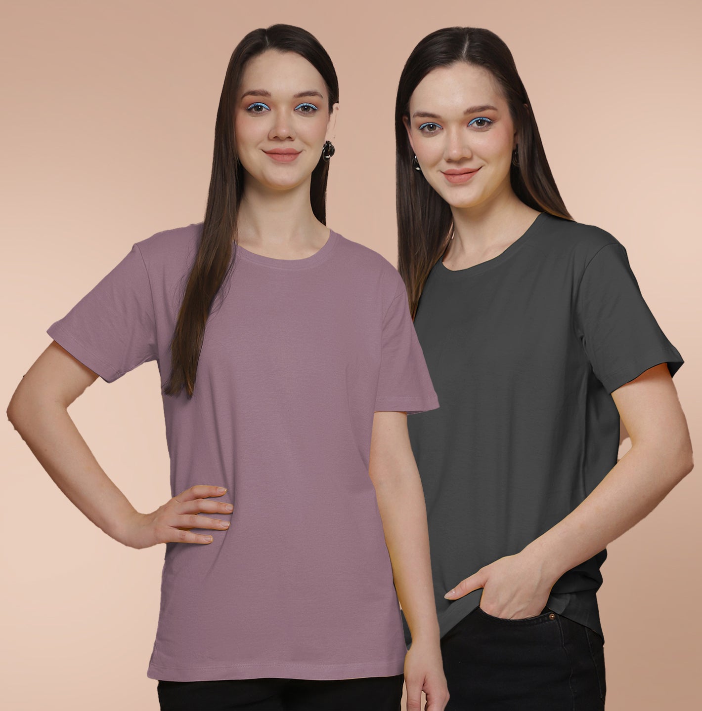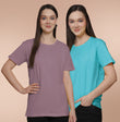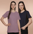 Friskers Pack Of 2 Dark Purple Combination Round Neck Half Sleeves Long T-Shirt