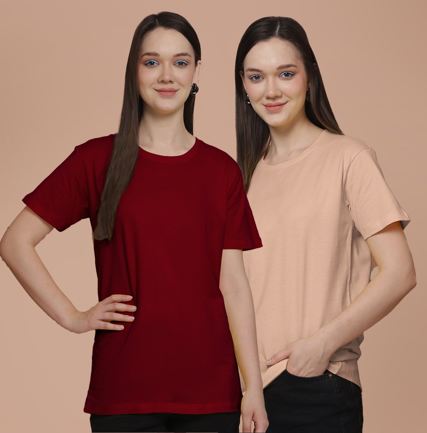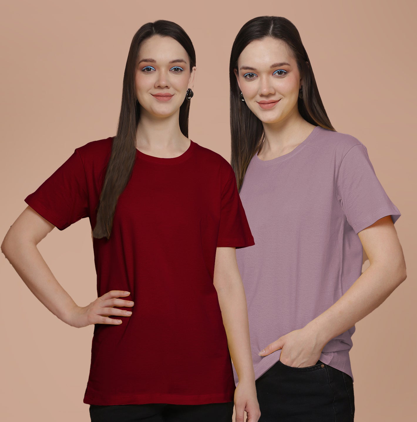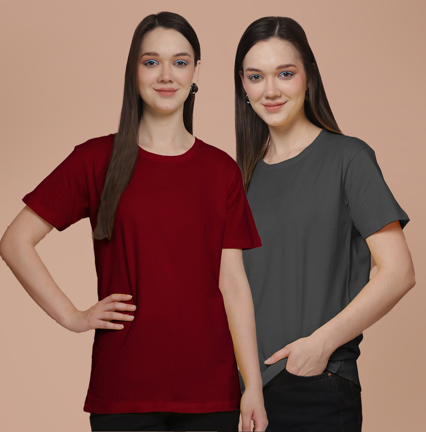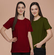 Friskers Pack Of 2 Maroon Combination Round Neck Half Sleeves Long T-Shirt