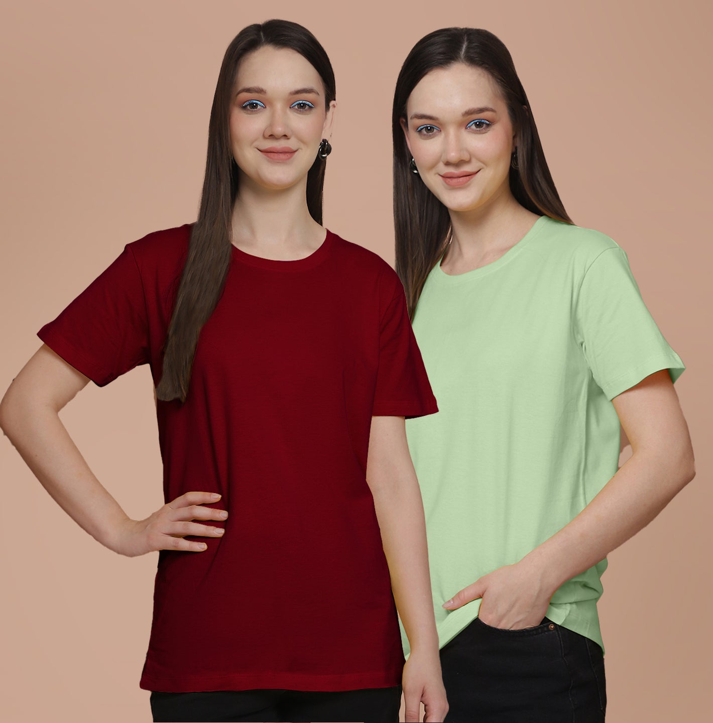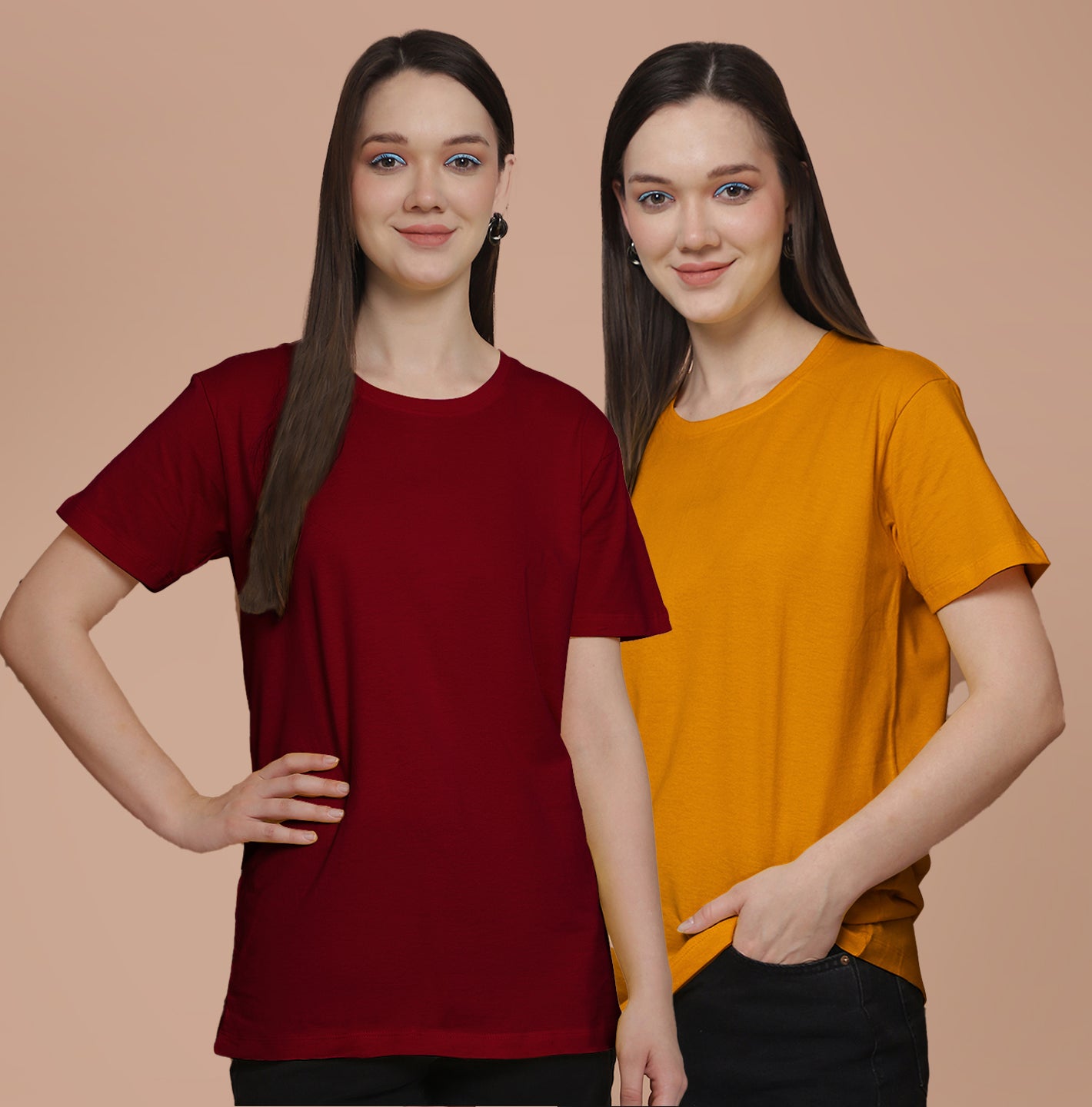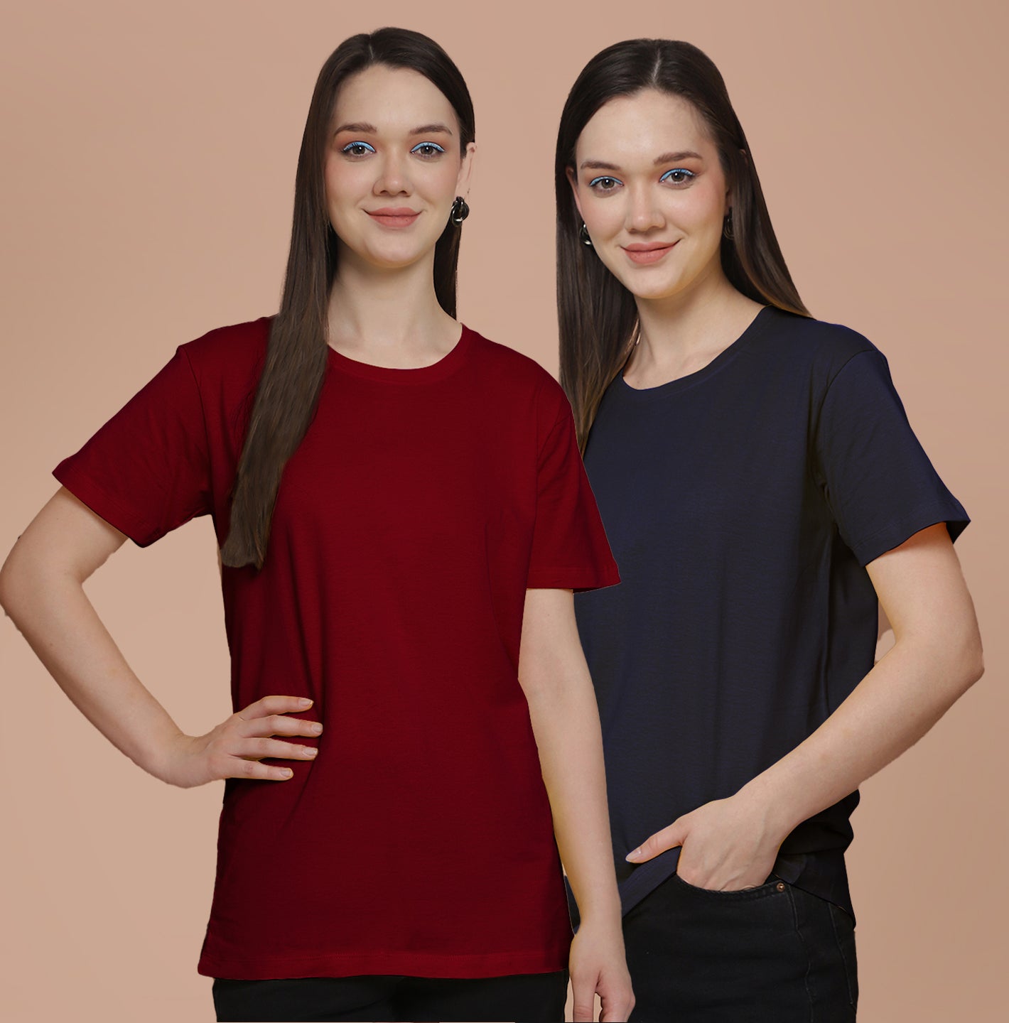 Friskers Pack Of 2 Maroon Combination Round Neck Half Sleeves Long T-Shirt