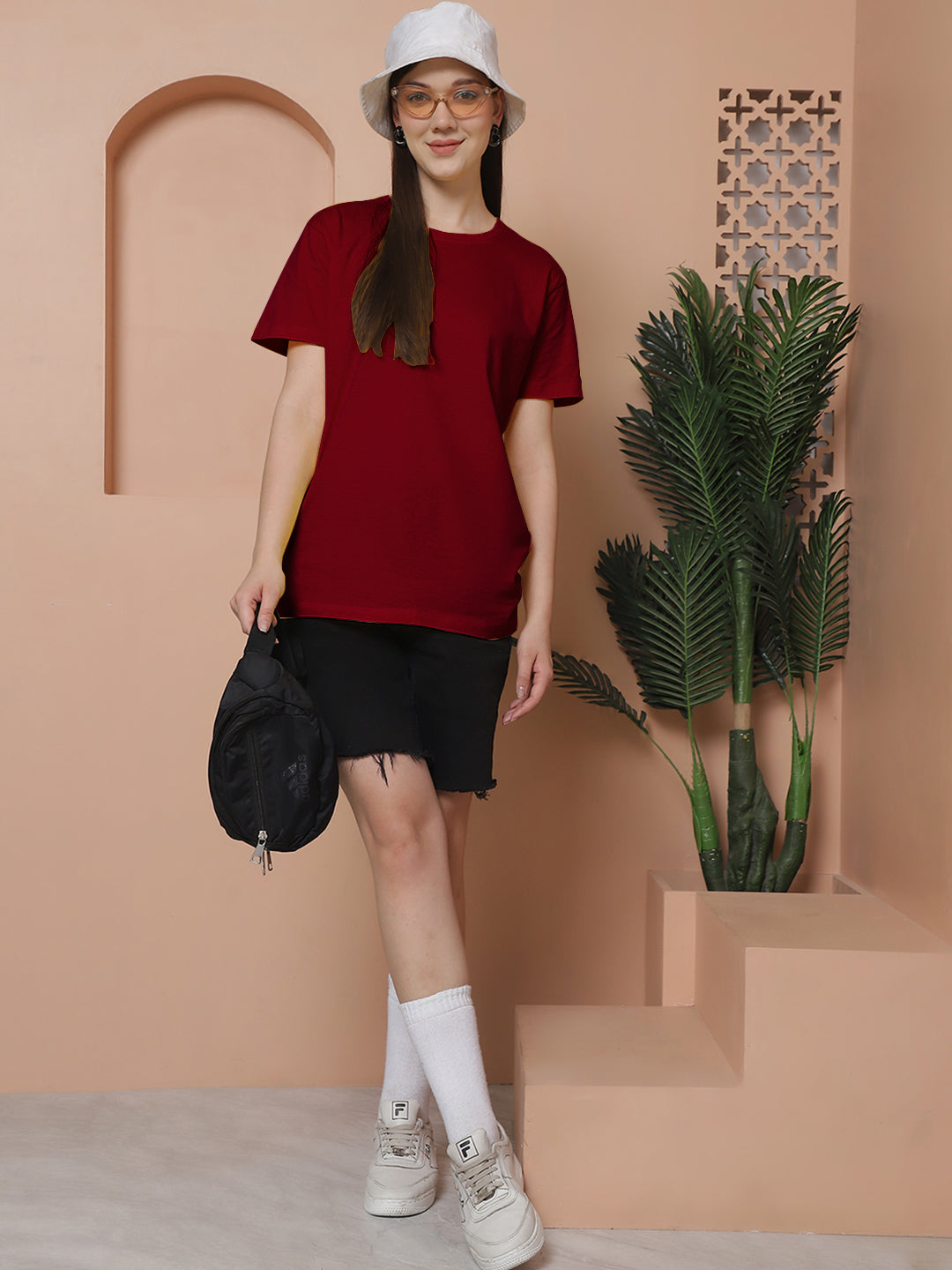 Friskers Solid Women Round Neck Half Sleeves T-Shirt