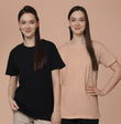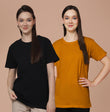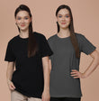 Friskers Pack Of 2 Black Combination Round Neck Half Sleeves Long T-Shirt