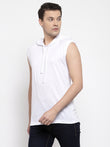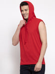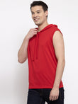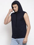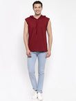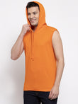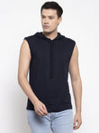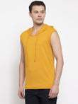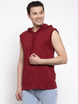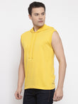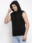Frisker's Solid Men Hooded Neck Sleeveless T-Shirt
