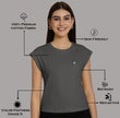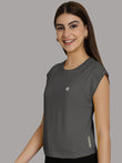 Friskers Solid Women Round Neck Extended Sleeves T-Shirt