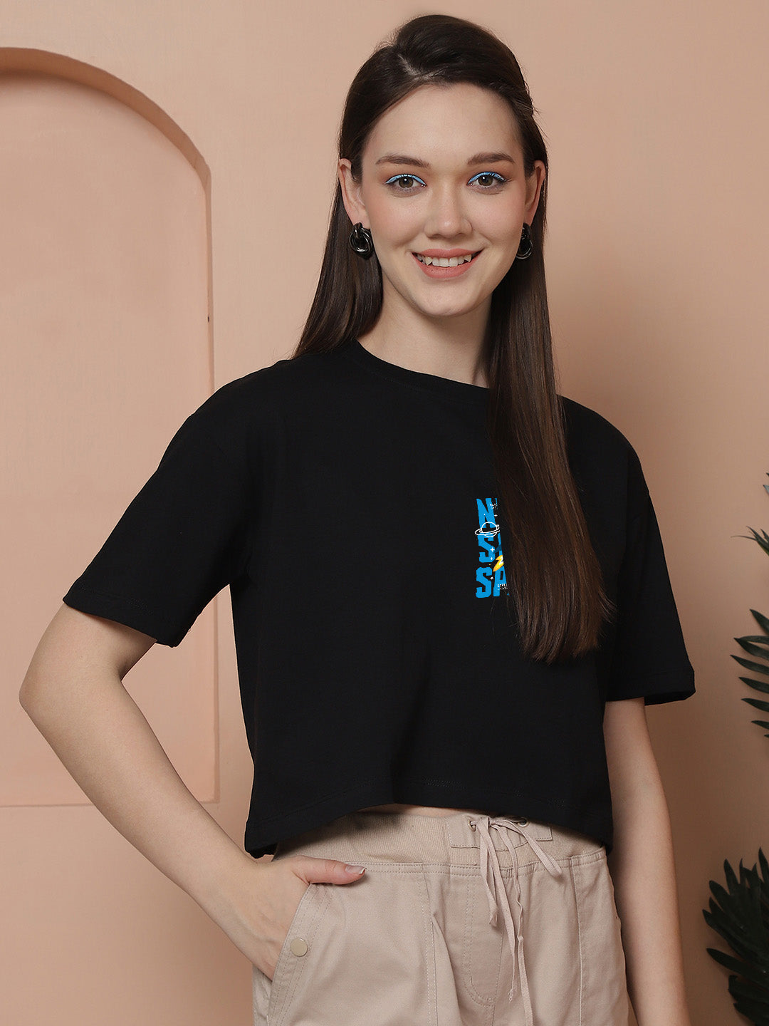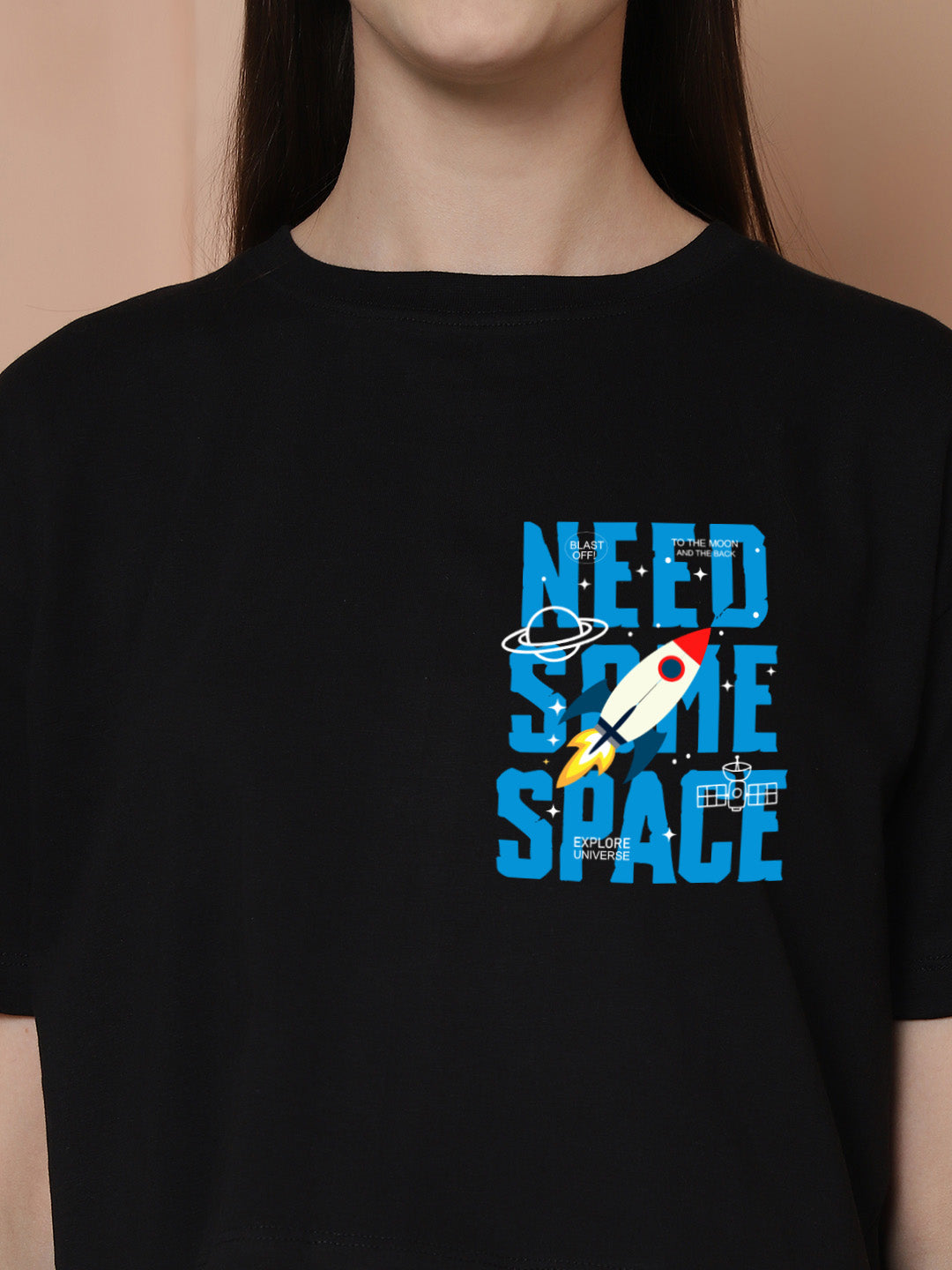 Friskers Women Need Some Space Printed Round Neck Half Sleeves T-Shirt
