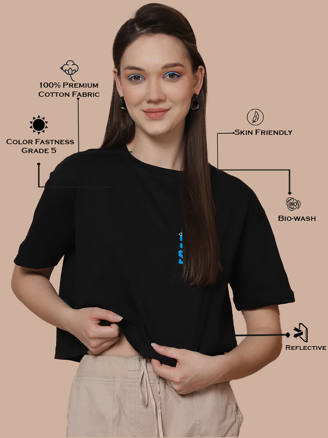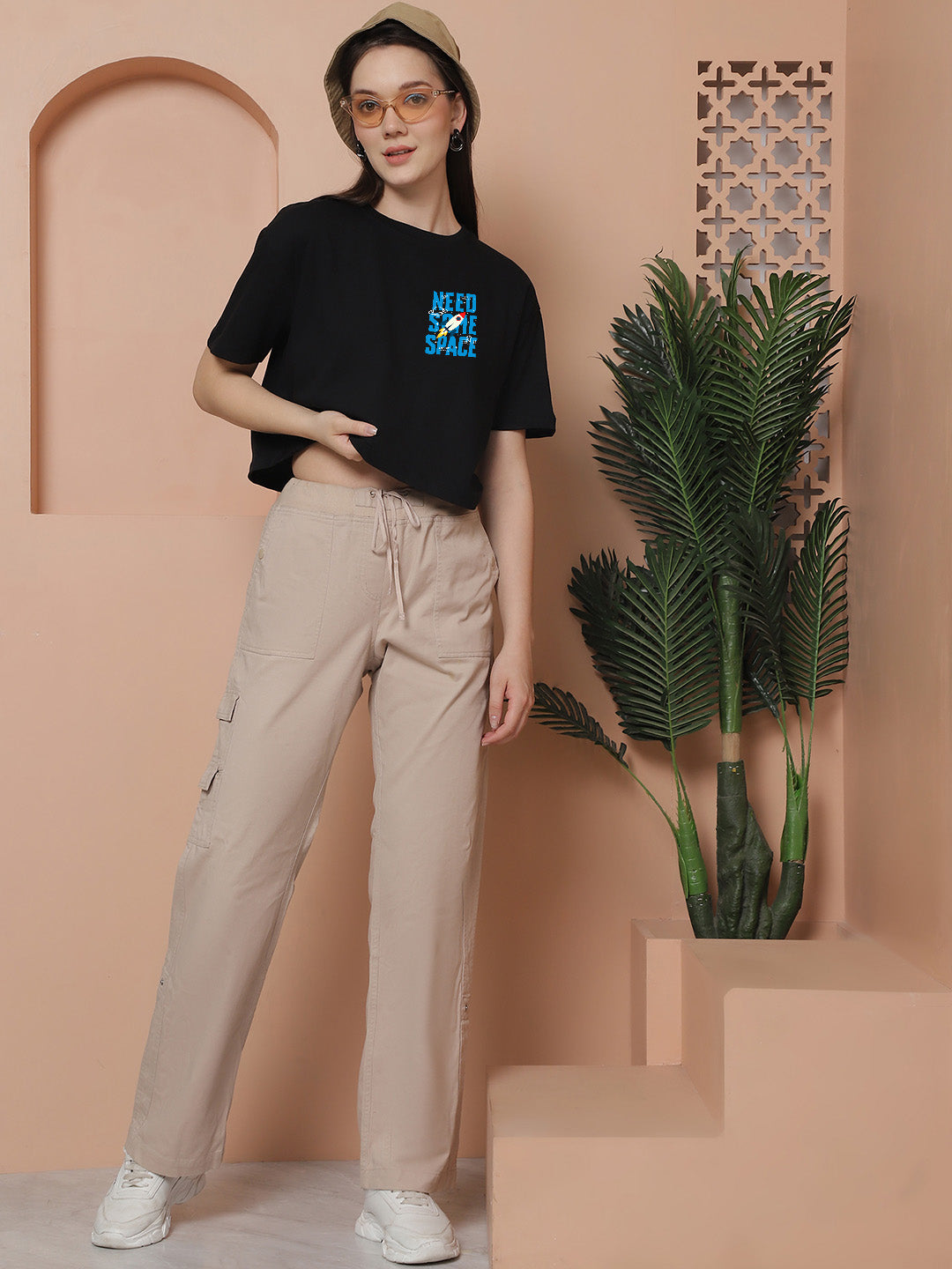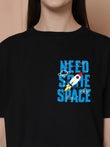 Friskers Women Need Some Space Printed Oversized Cotton Tshirt