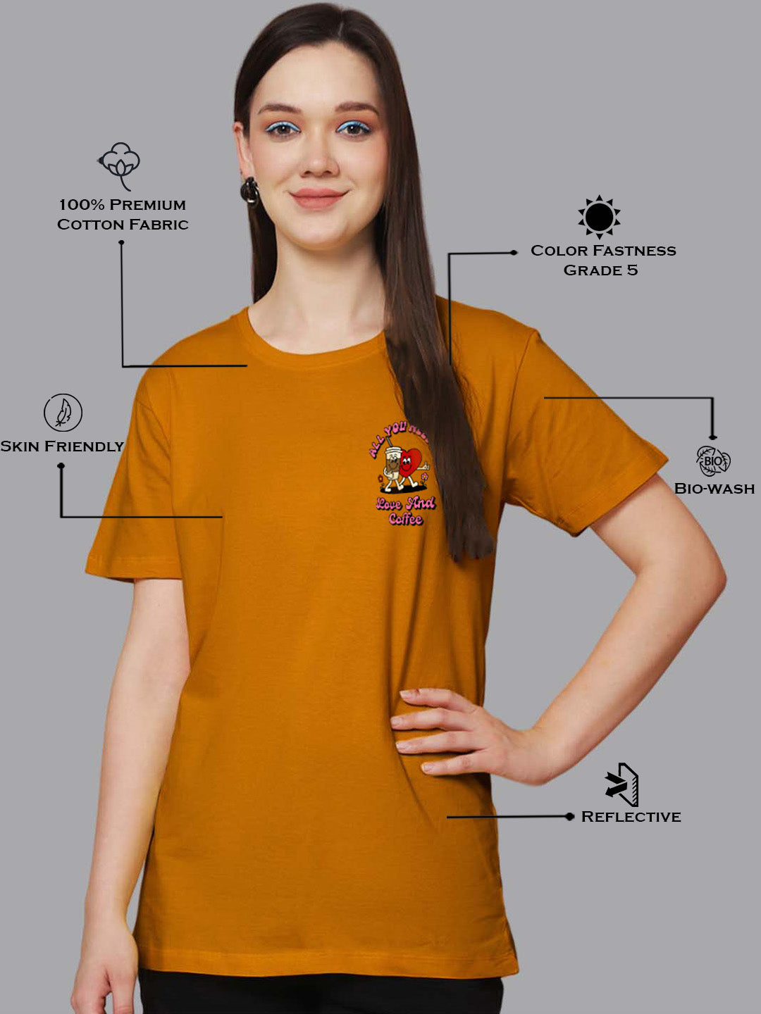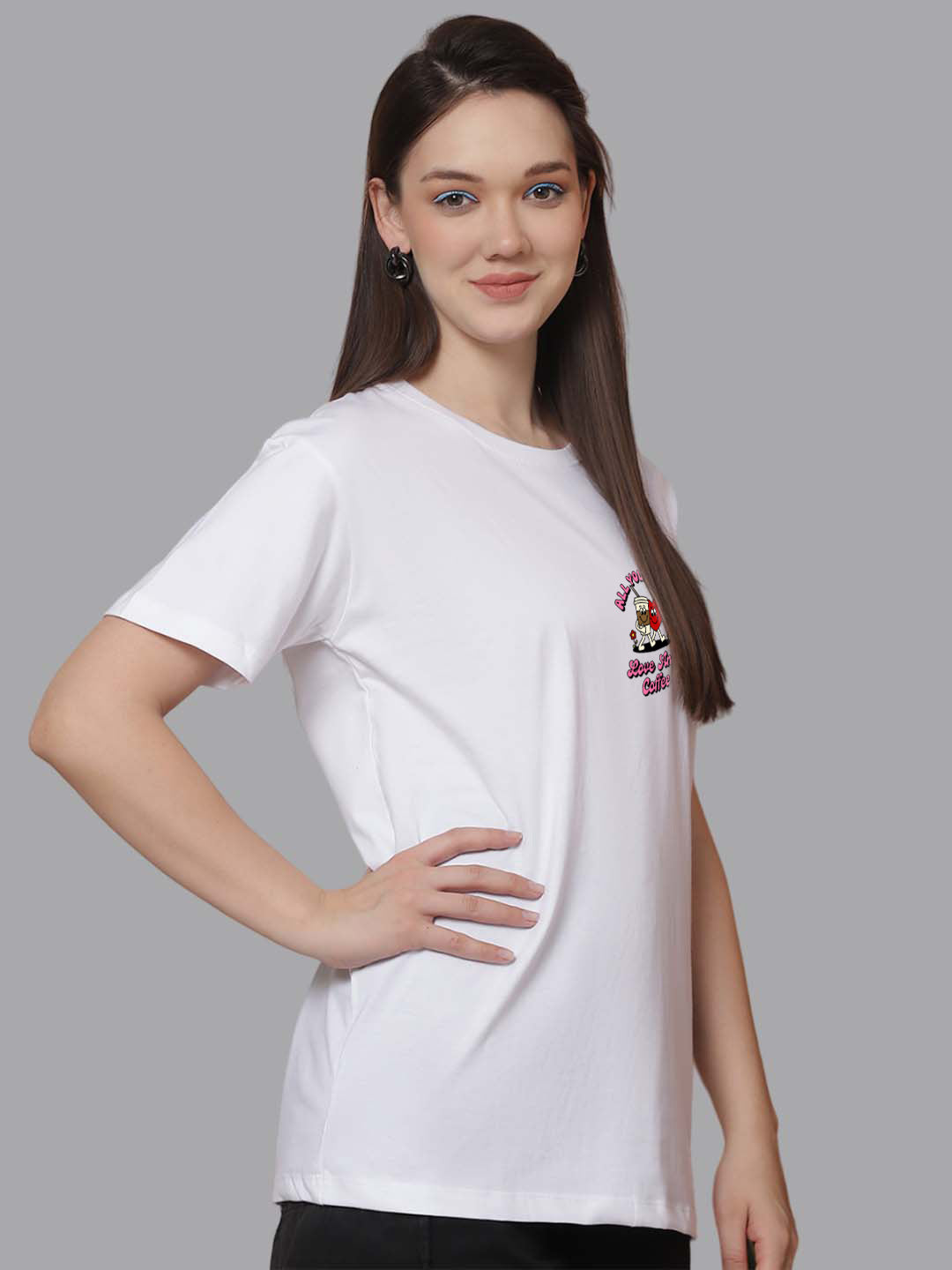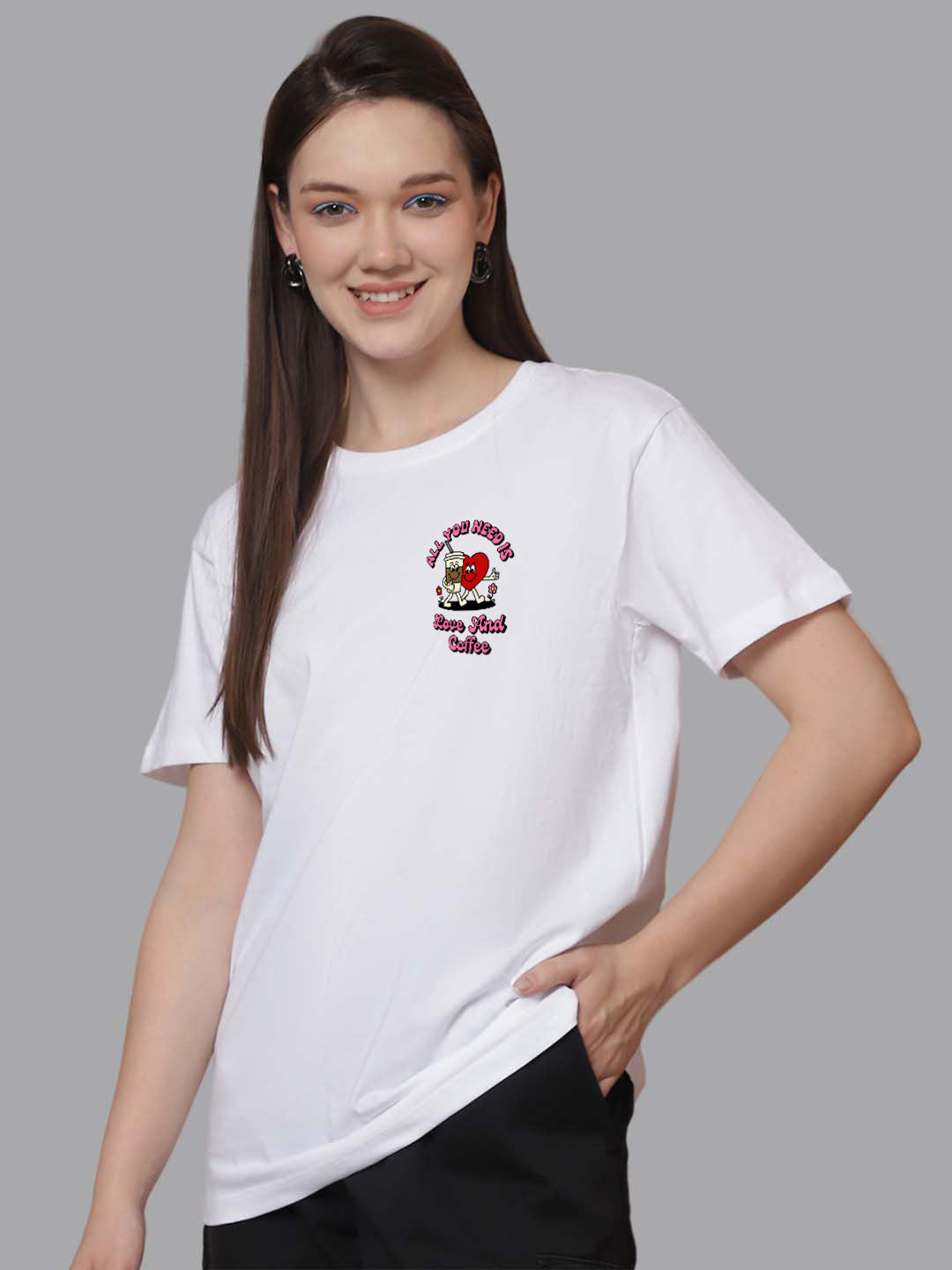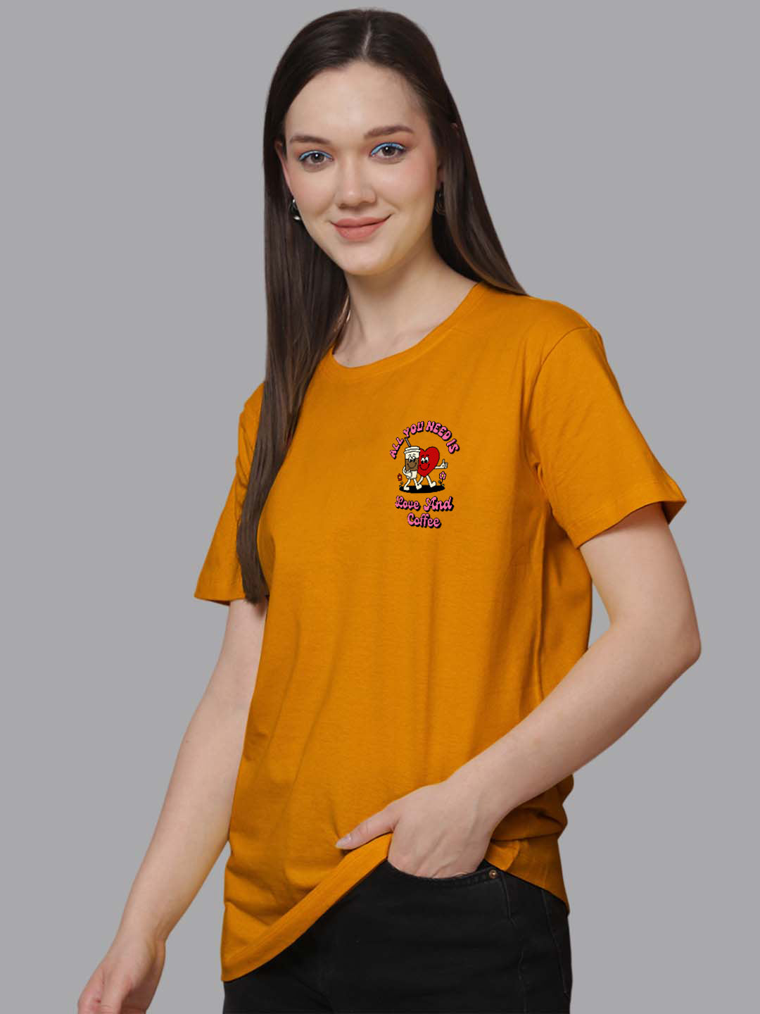 Friskers Women Love And Coffee Print Round Neck Half Sleeves T-Shirt