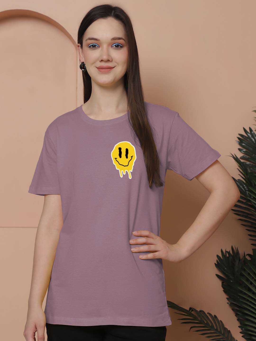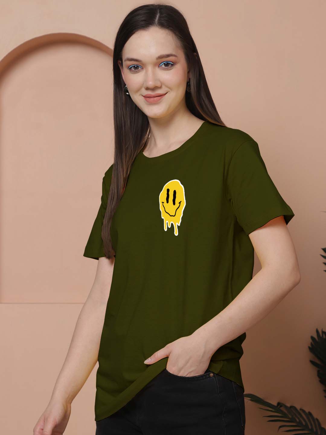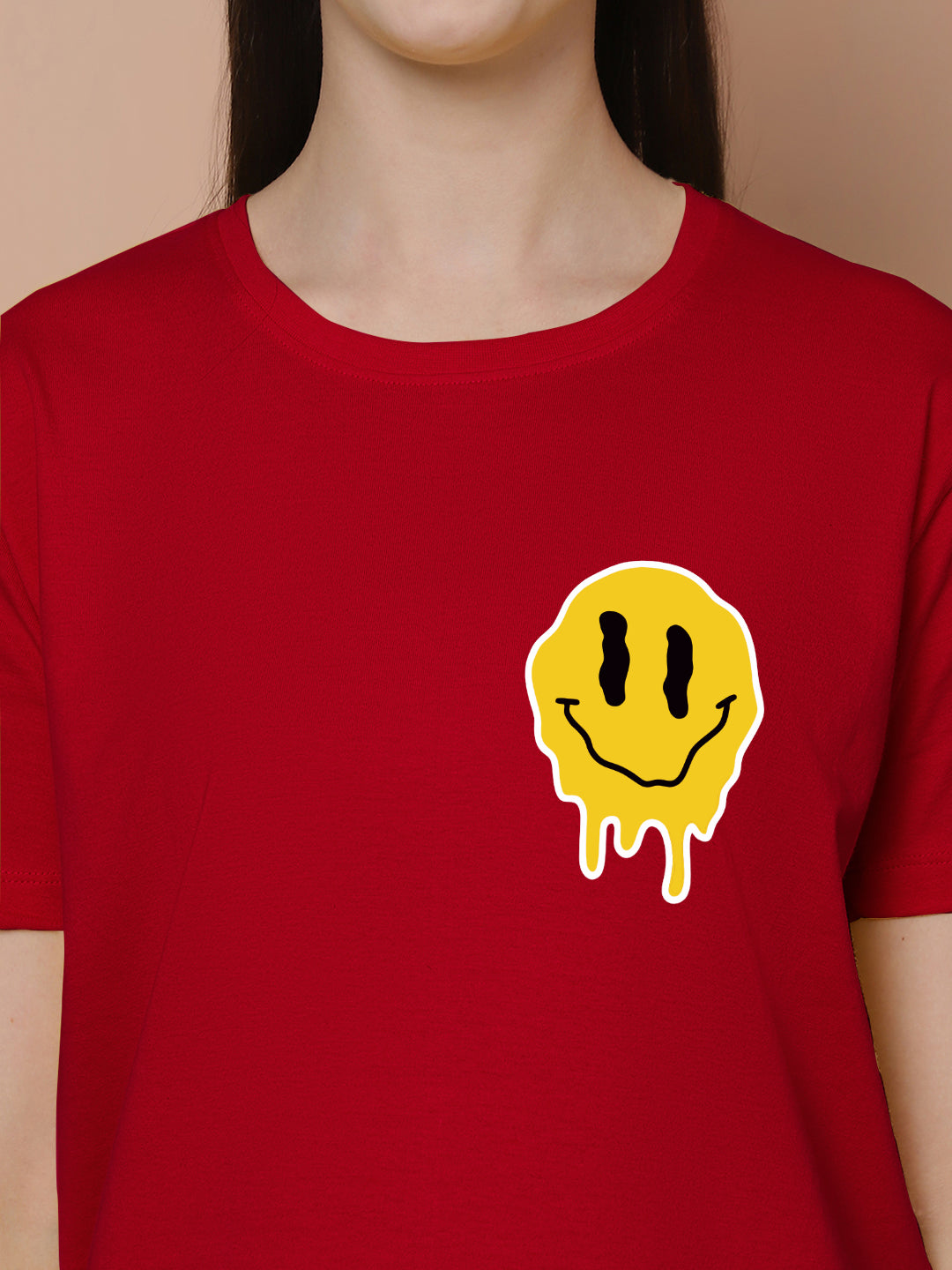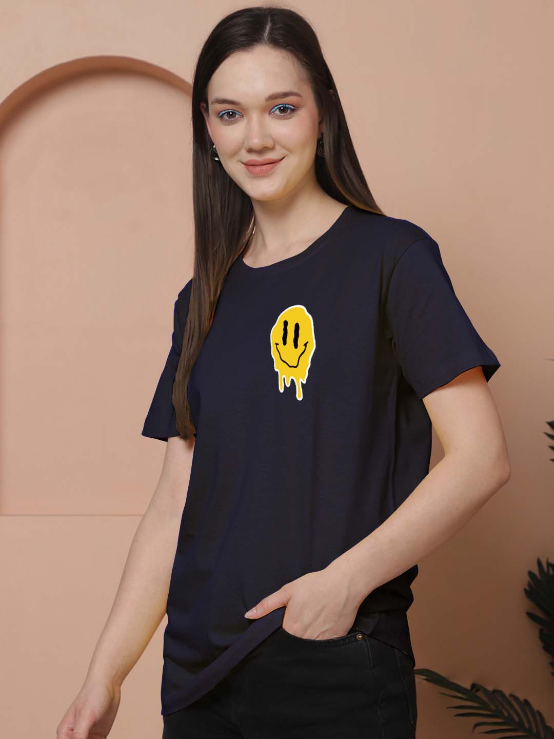 Friskers Women Smile Print Round Neck Half Sleeves T-Shirt
