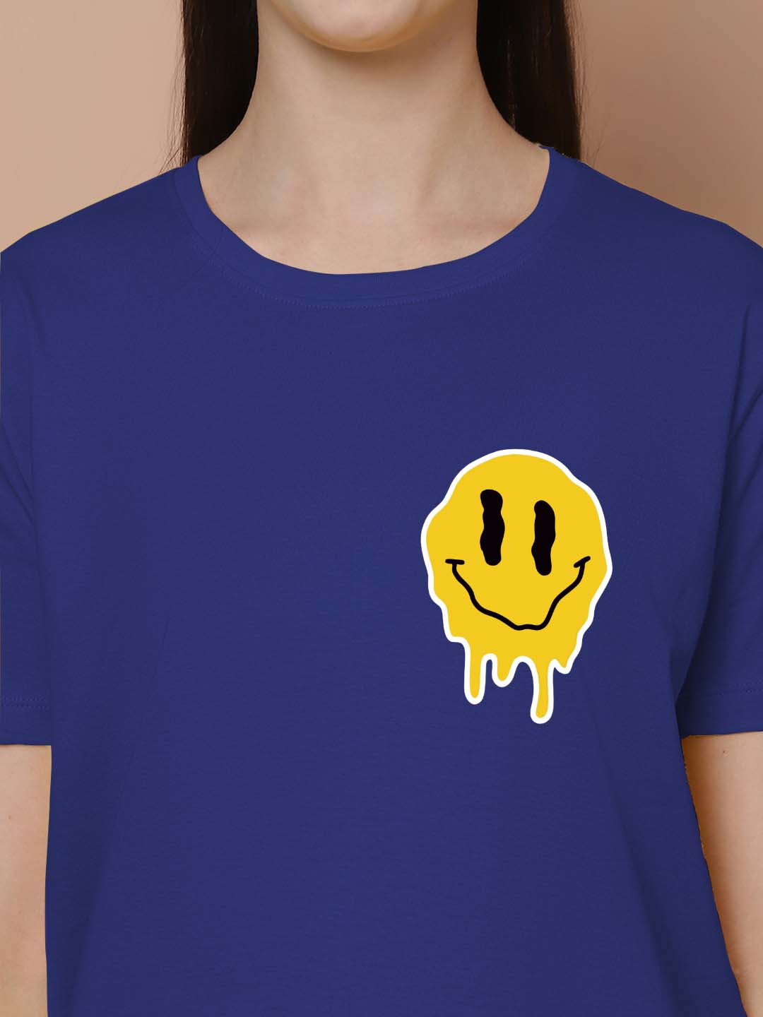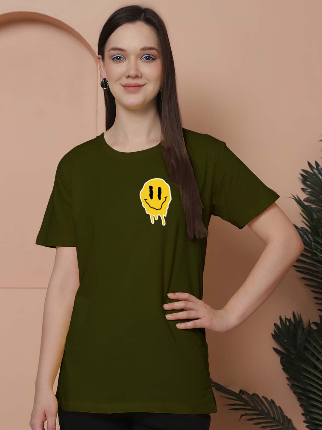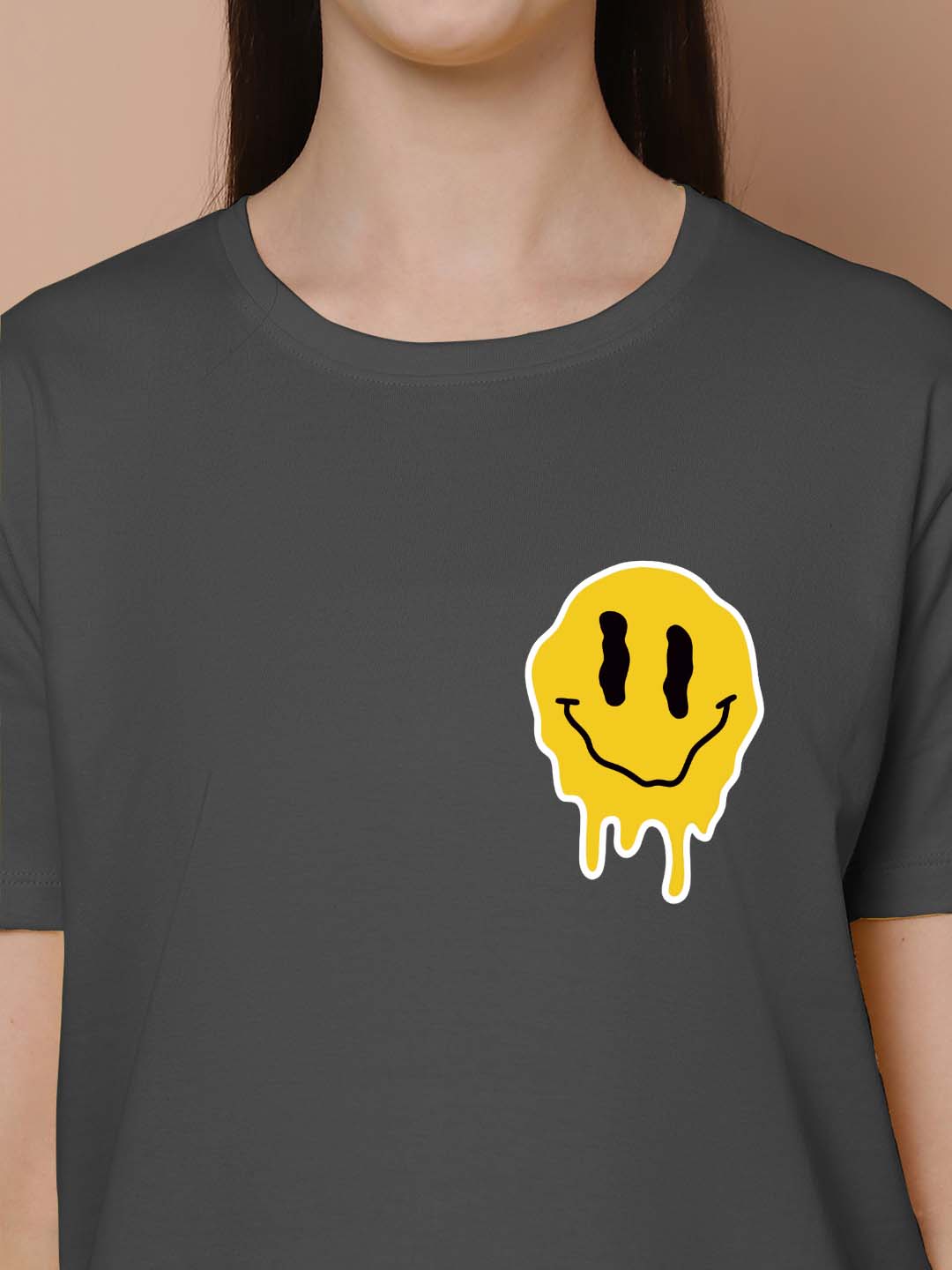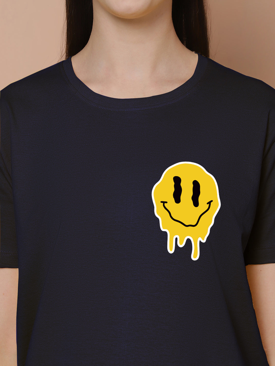 Friskers Women Smile Print Round Neck Half Sleeves T-Shirt