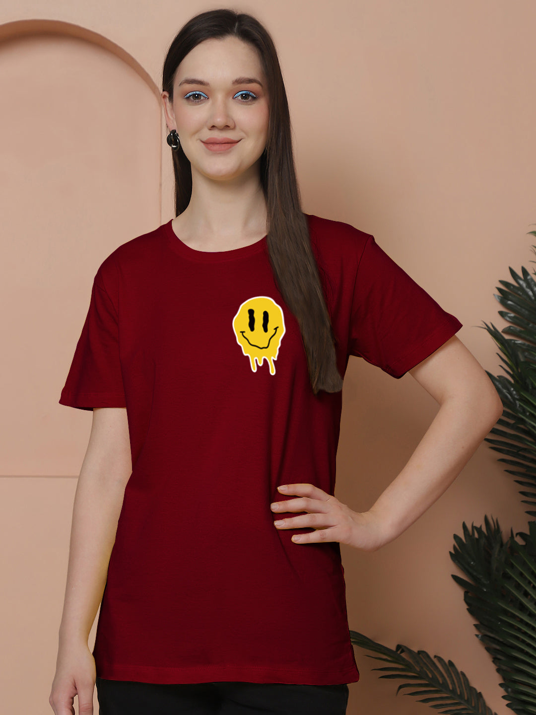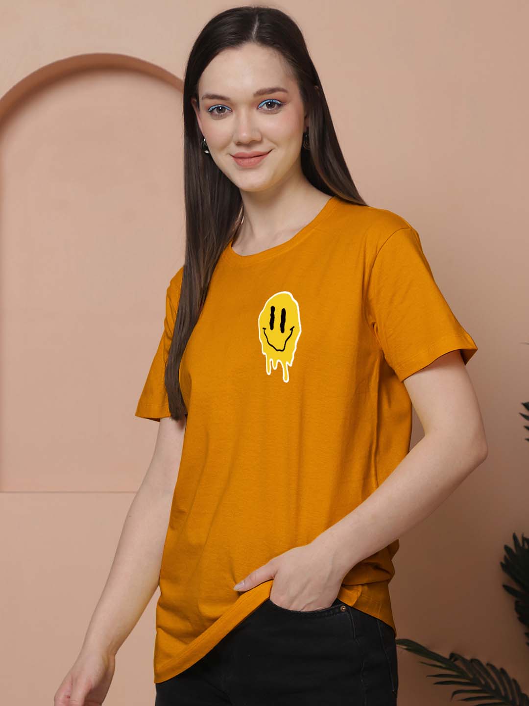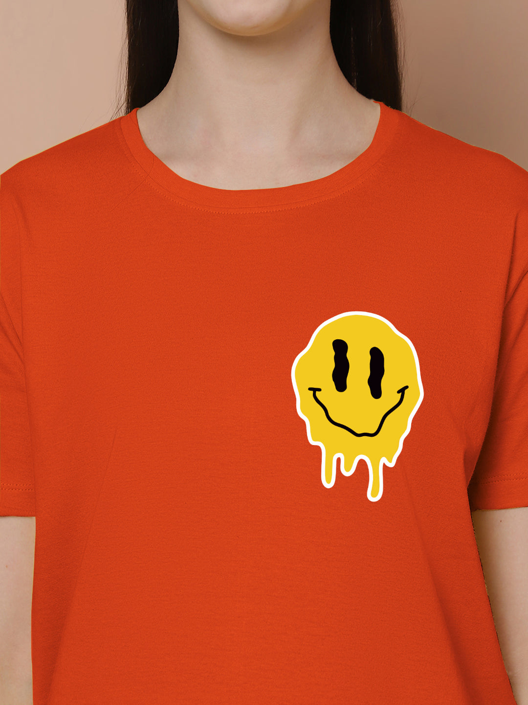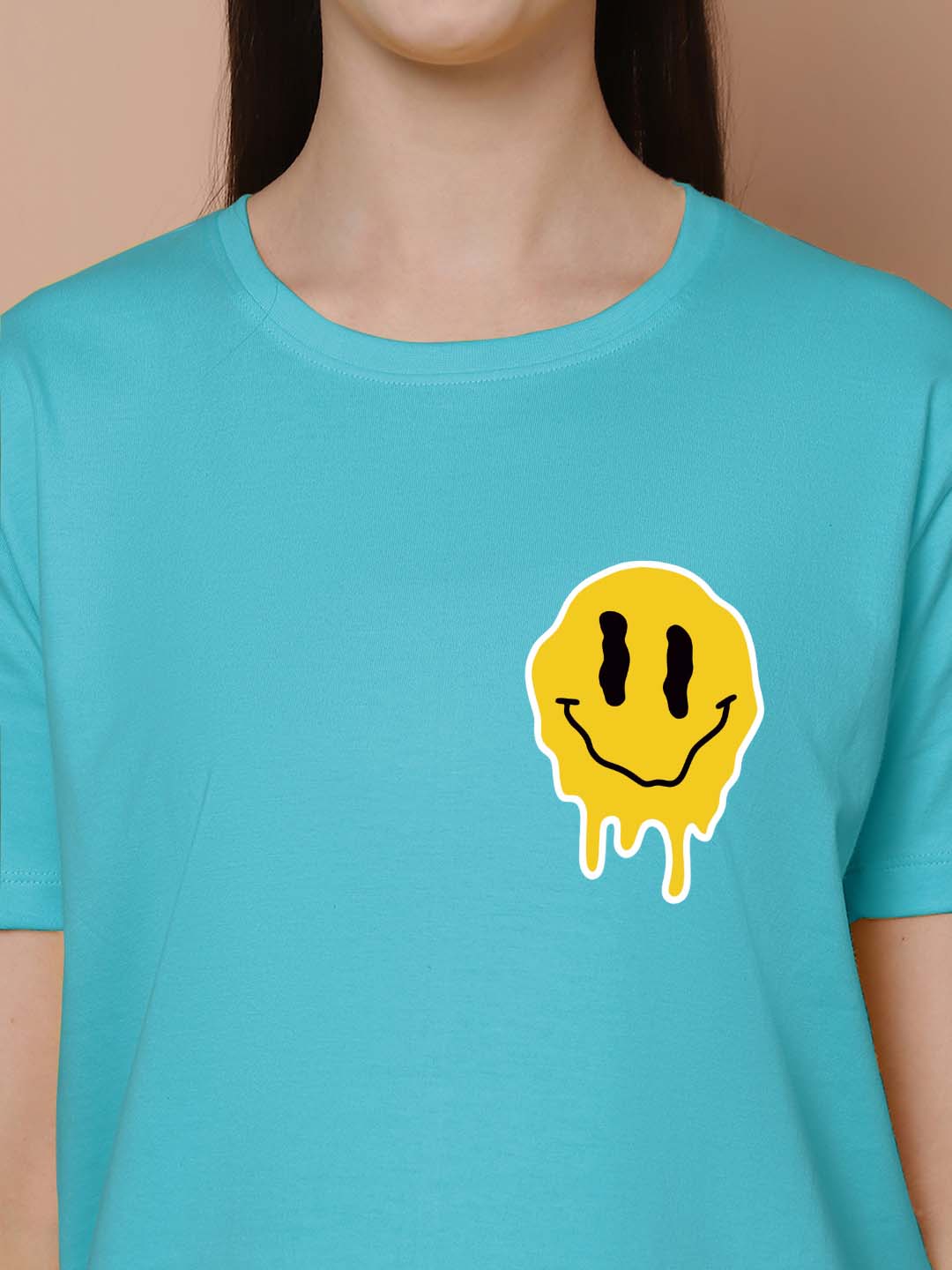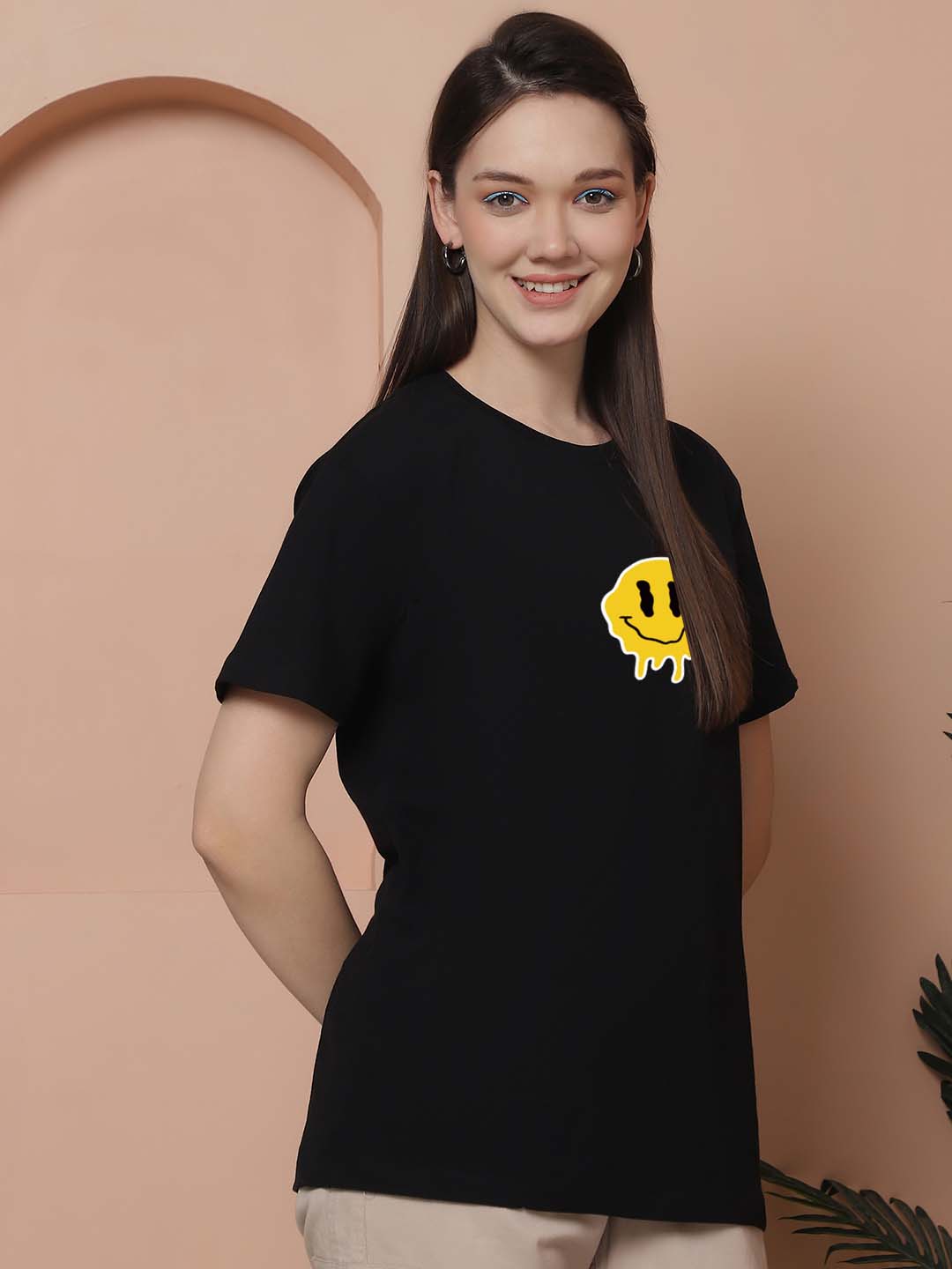 Friskers Women Smile Print Round Neck Half Sleeves T-Shirt