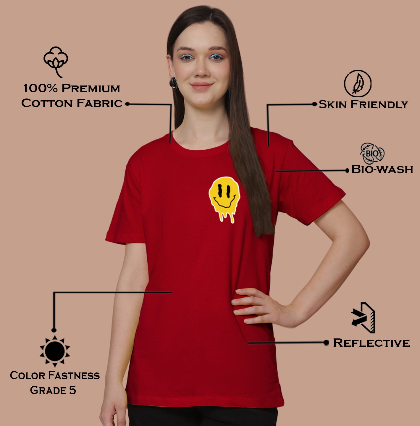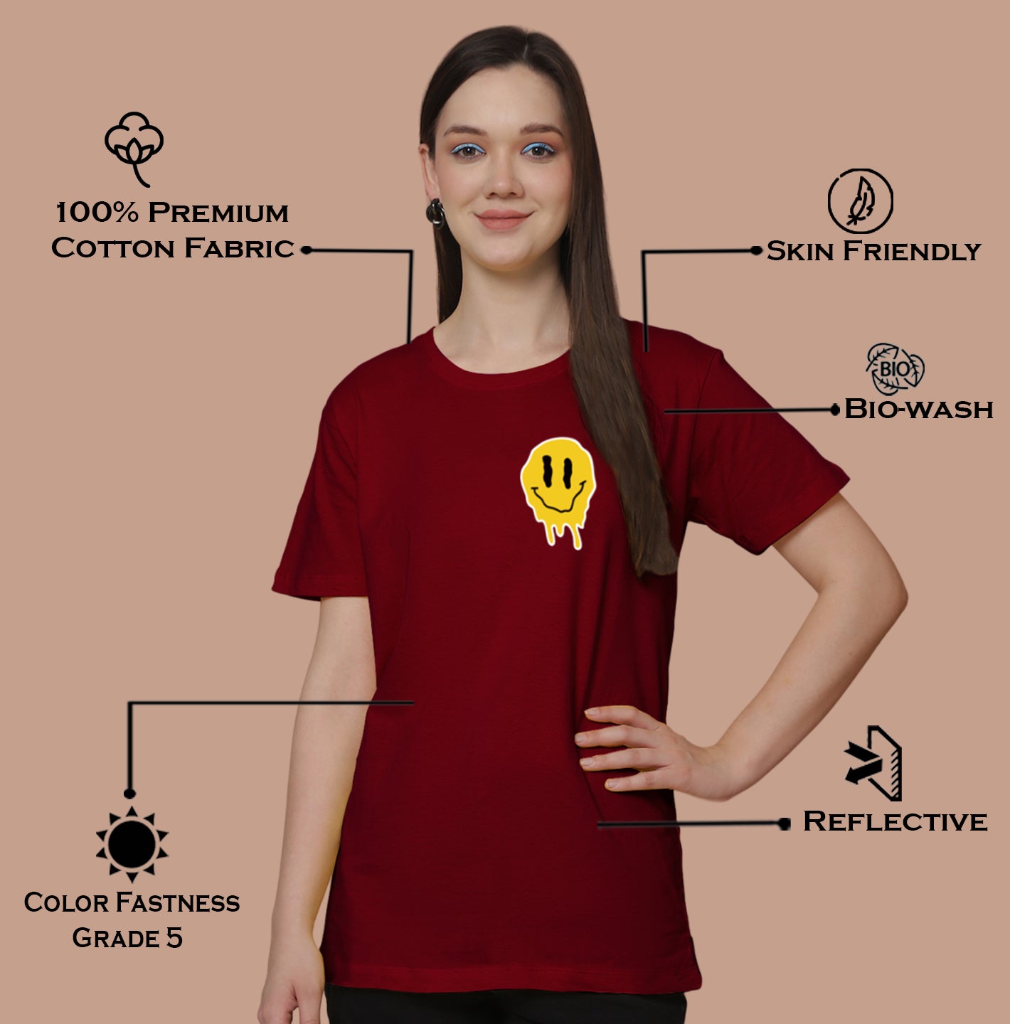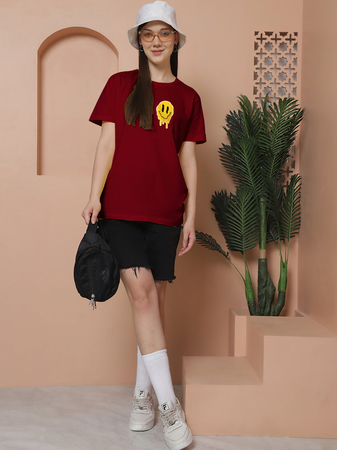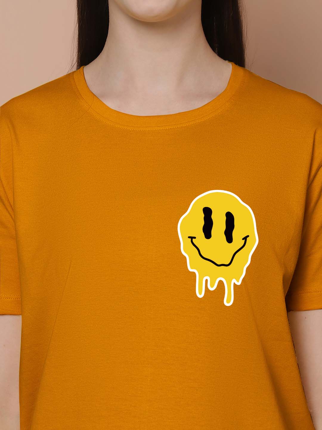 Friskers Women Smile Print Round Neck Half Sleeves T-Shirt