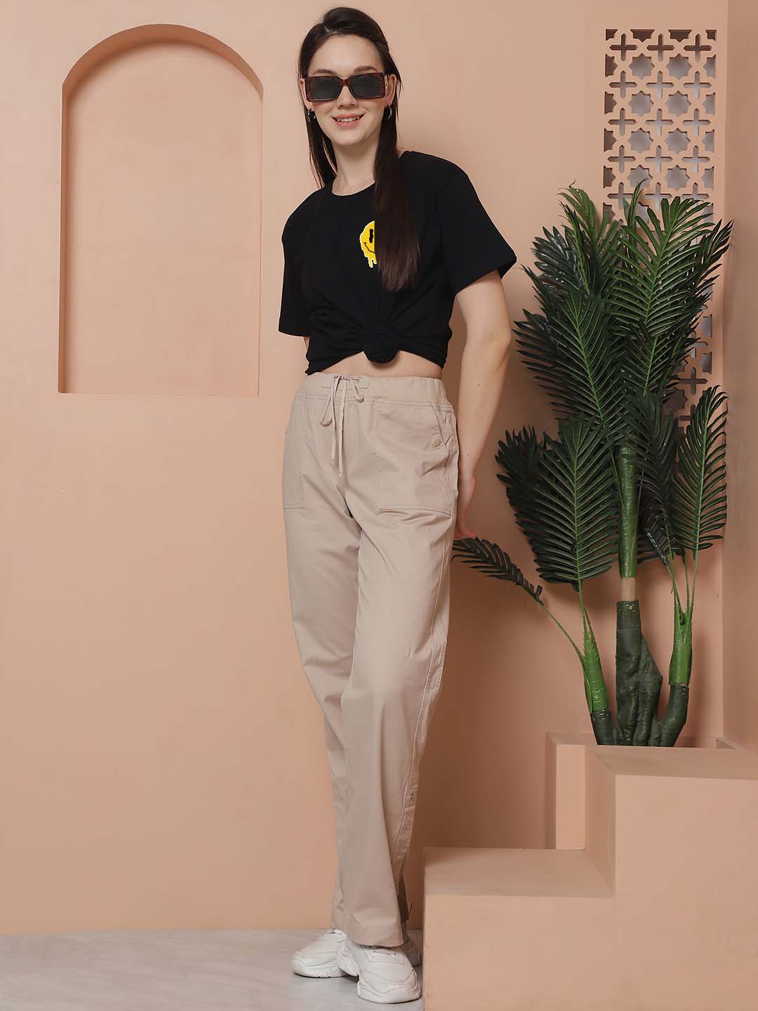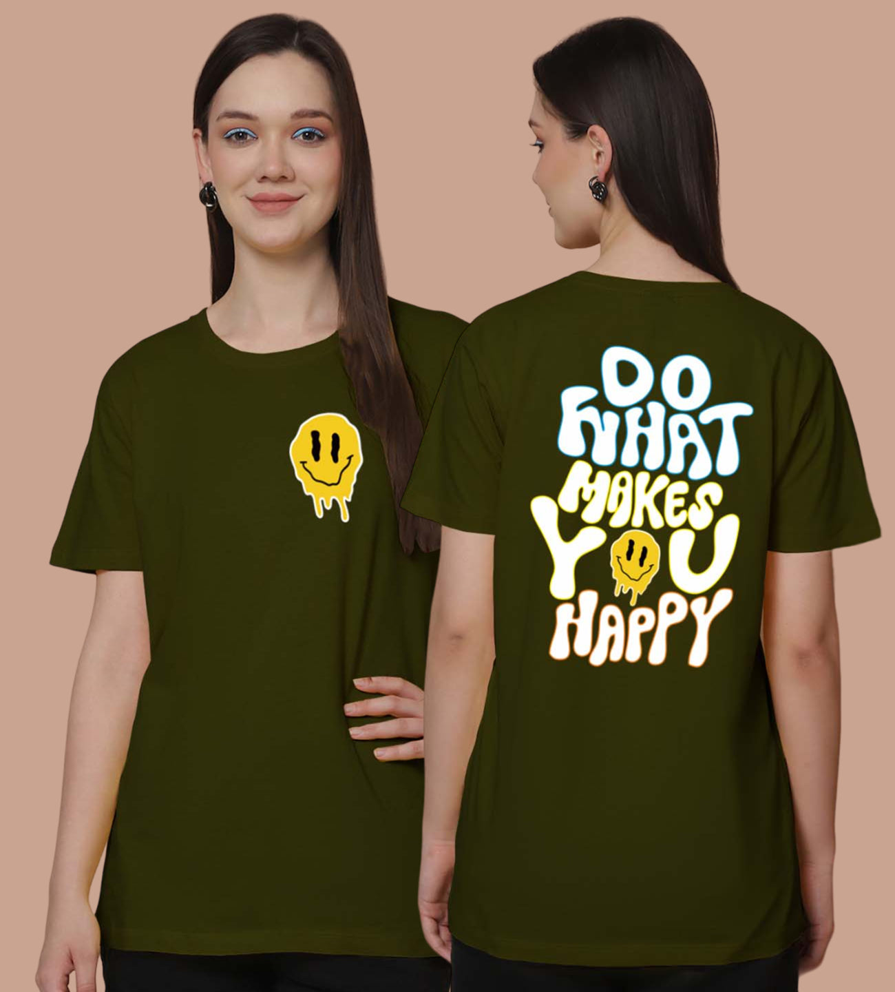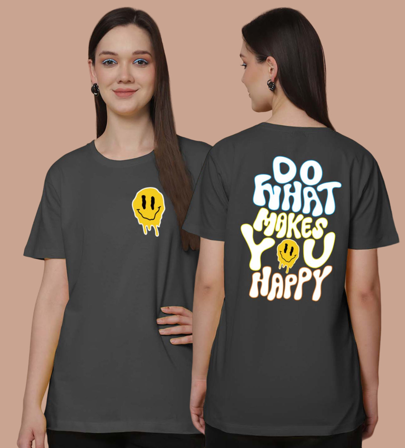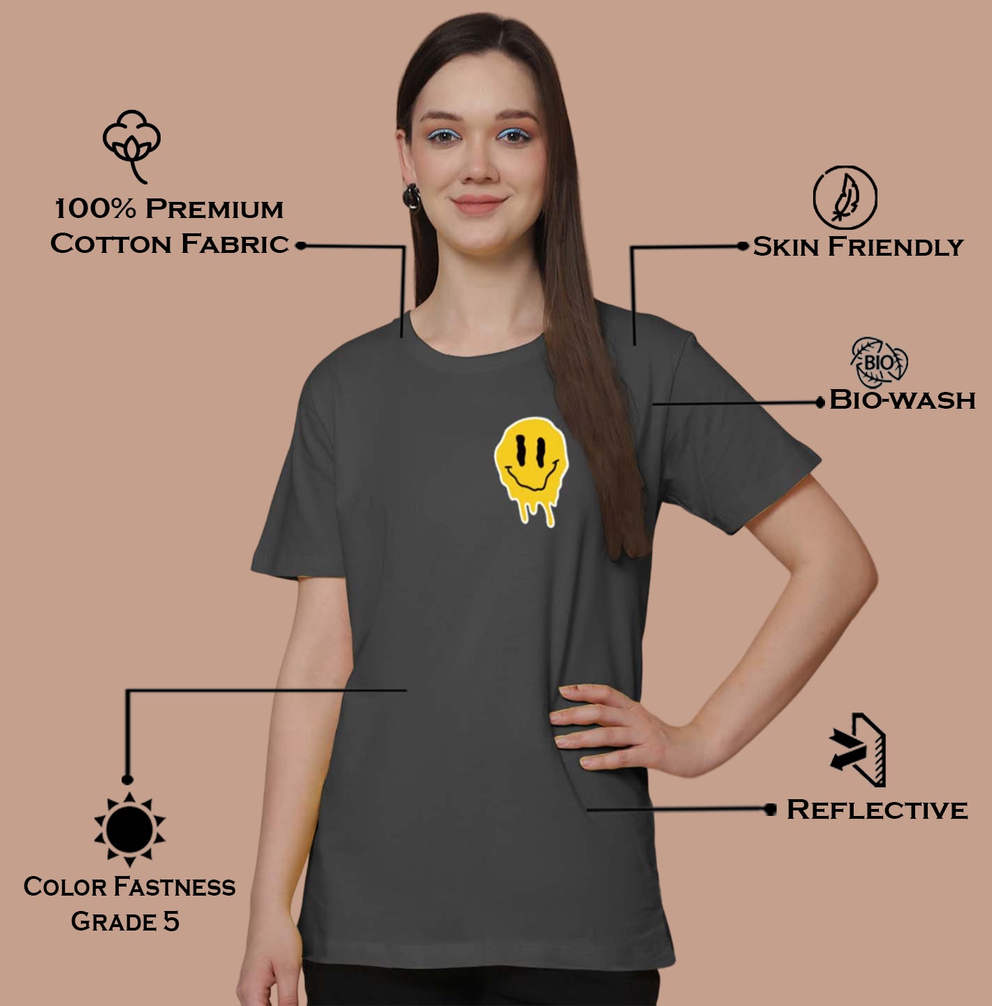 Friskers Women Smile Print Round Neck Half Sleeves T-Shirt