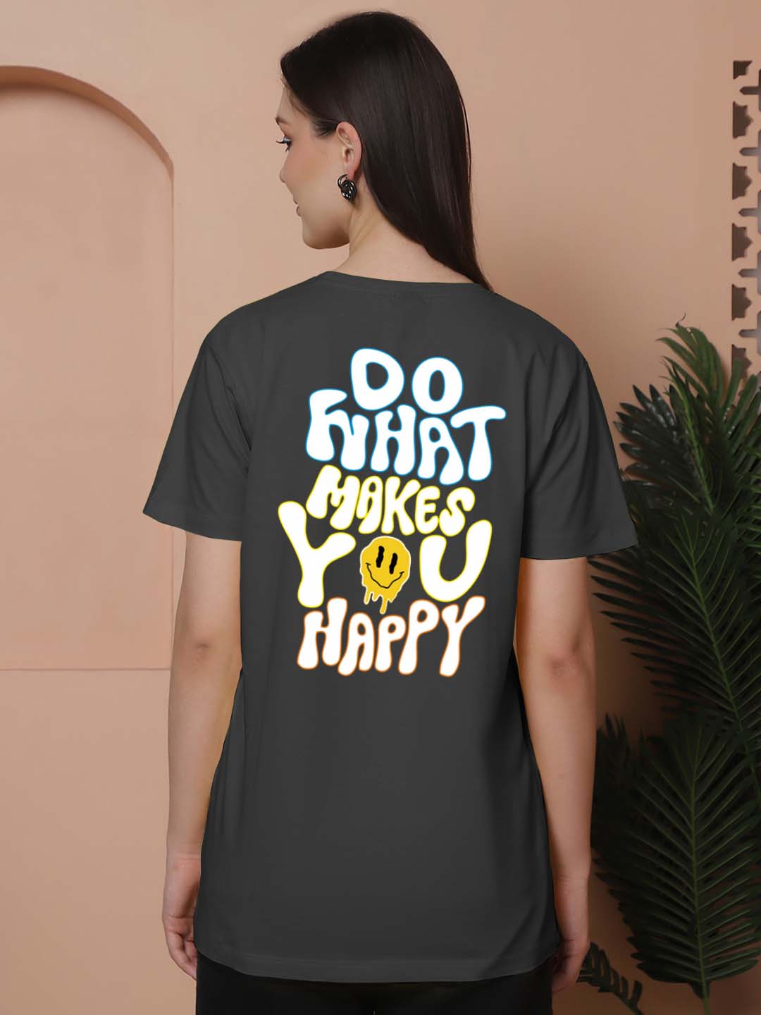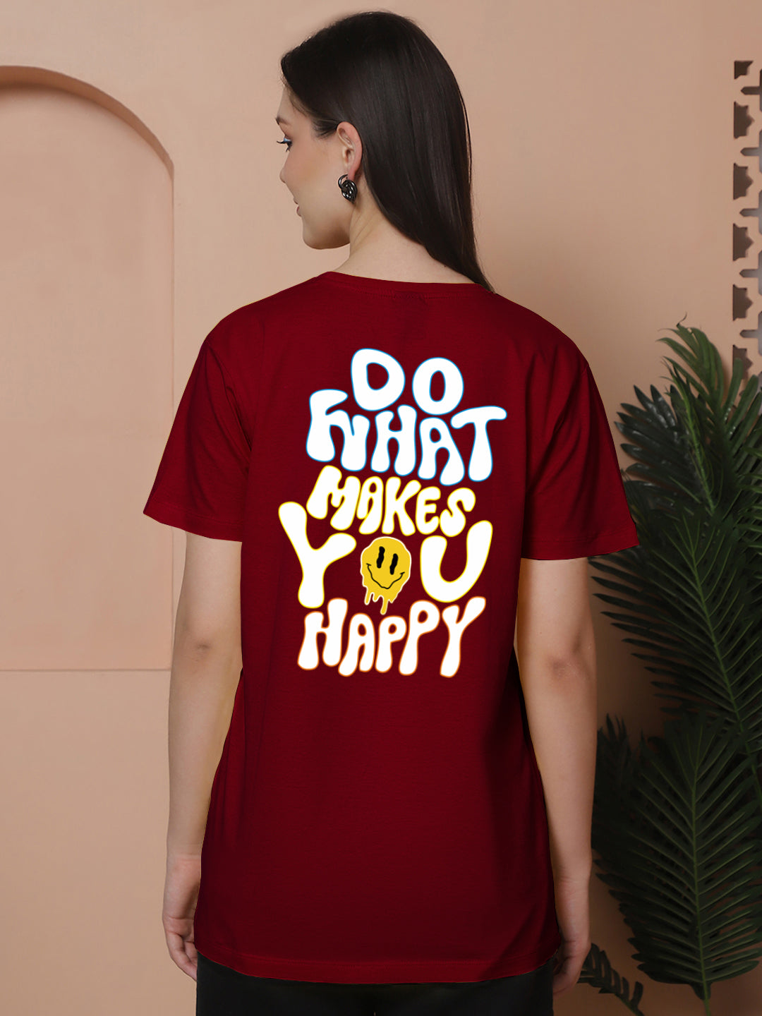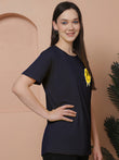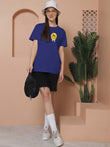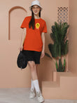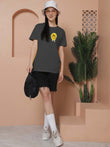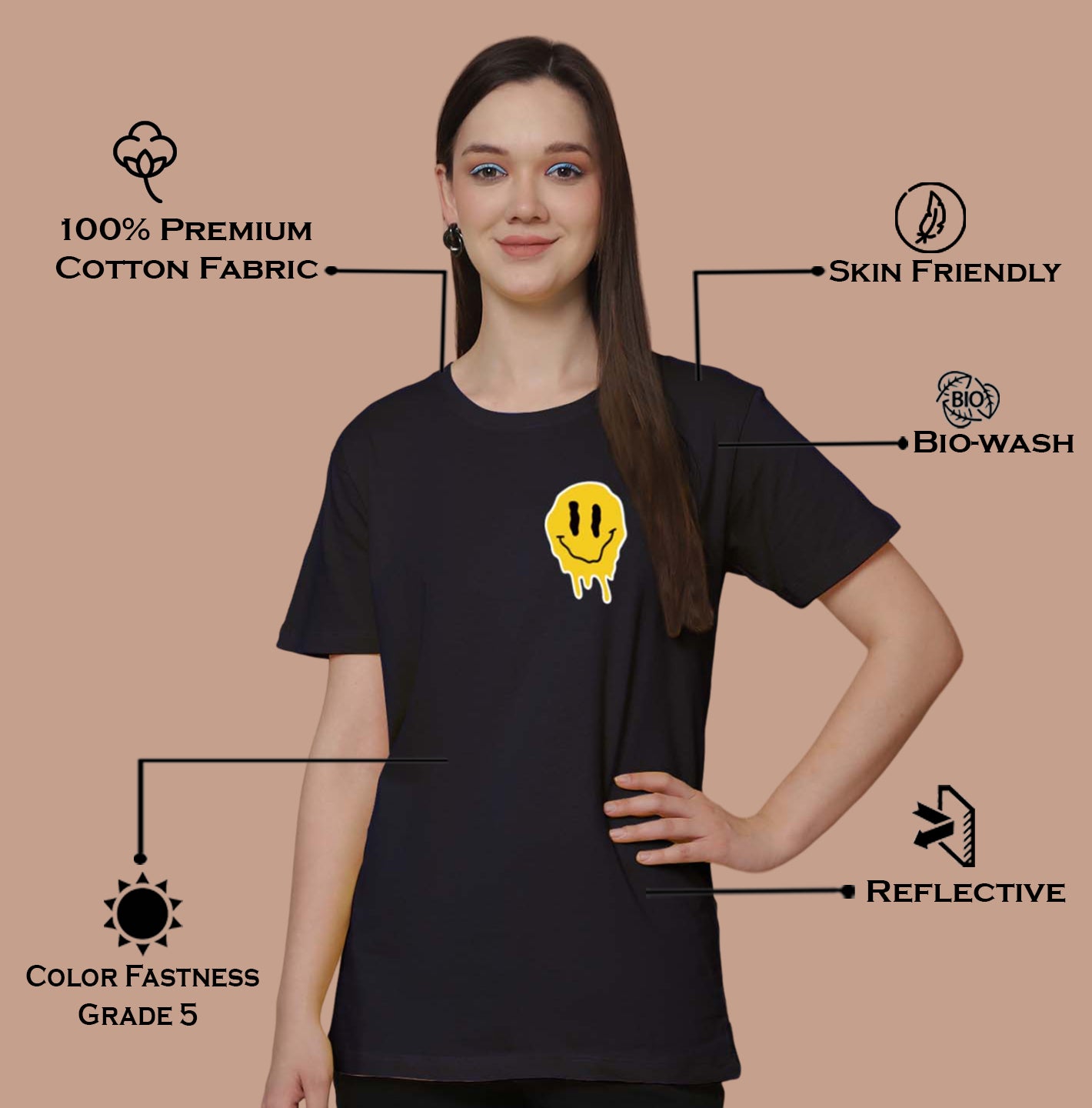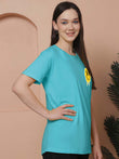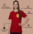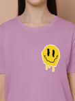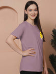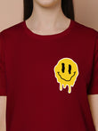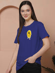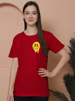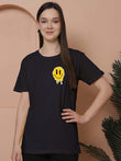 Friskers Women Smile Print Round Neck Half Sleeves Long T-Shirt