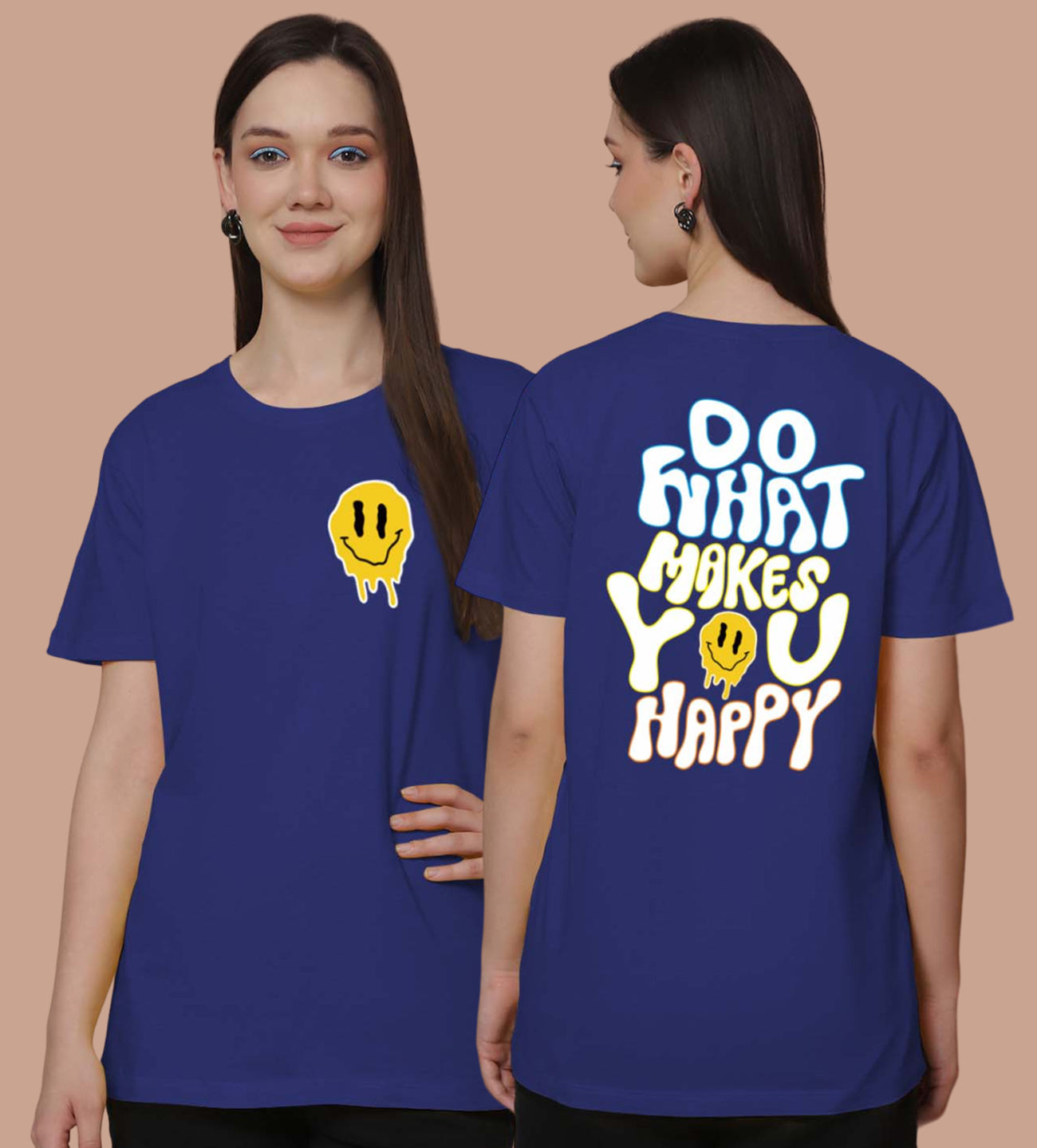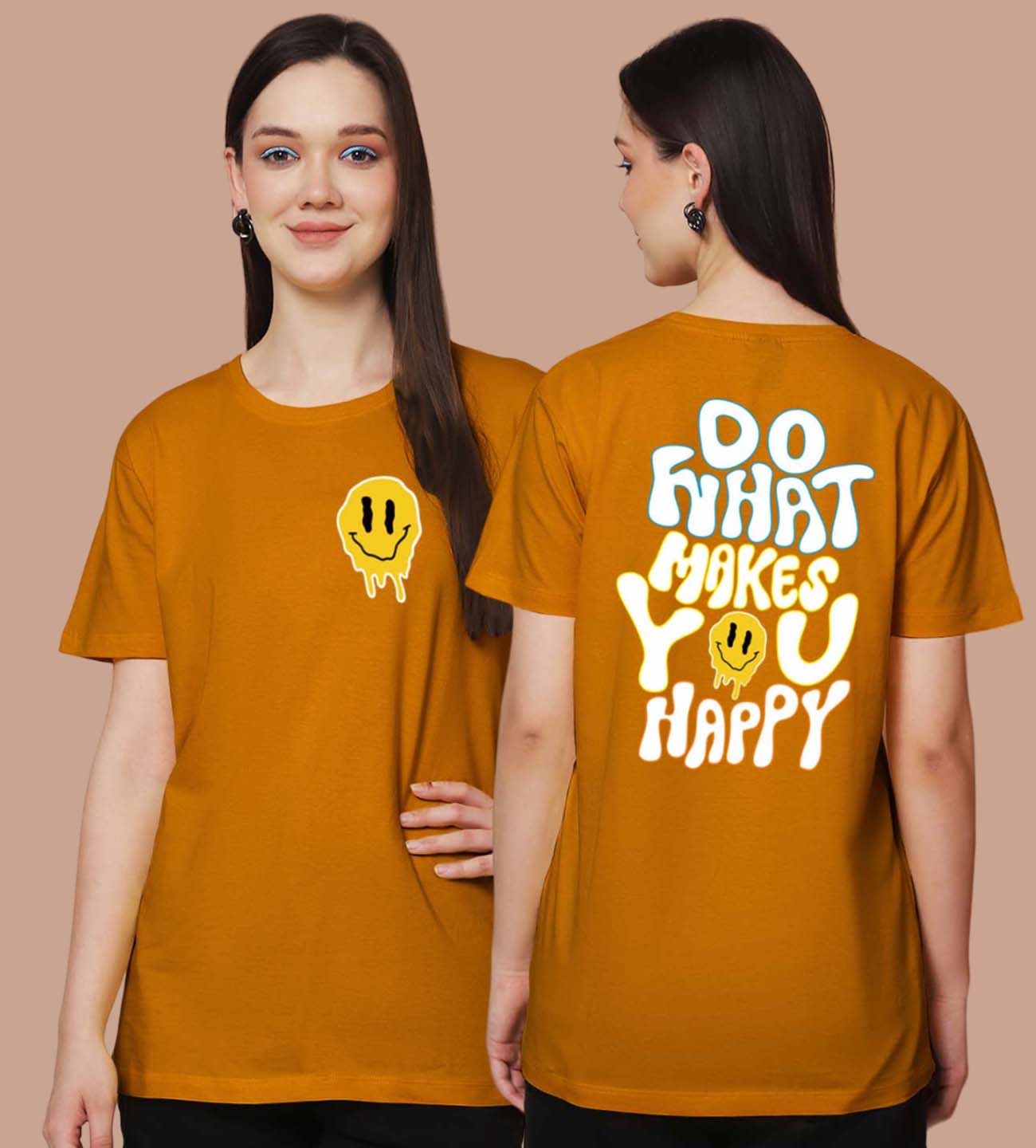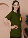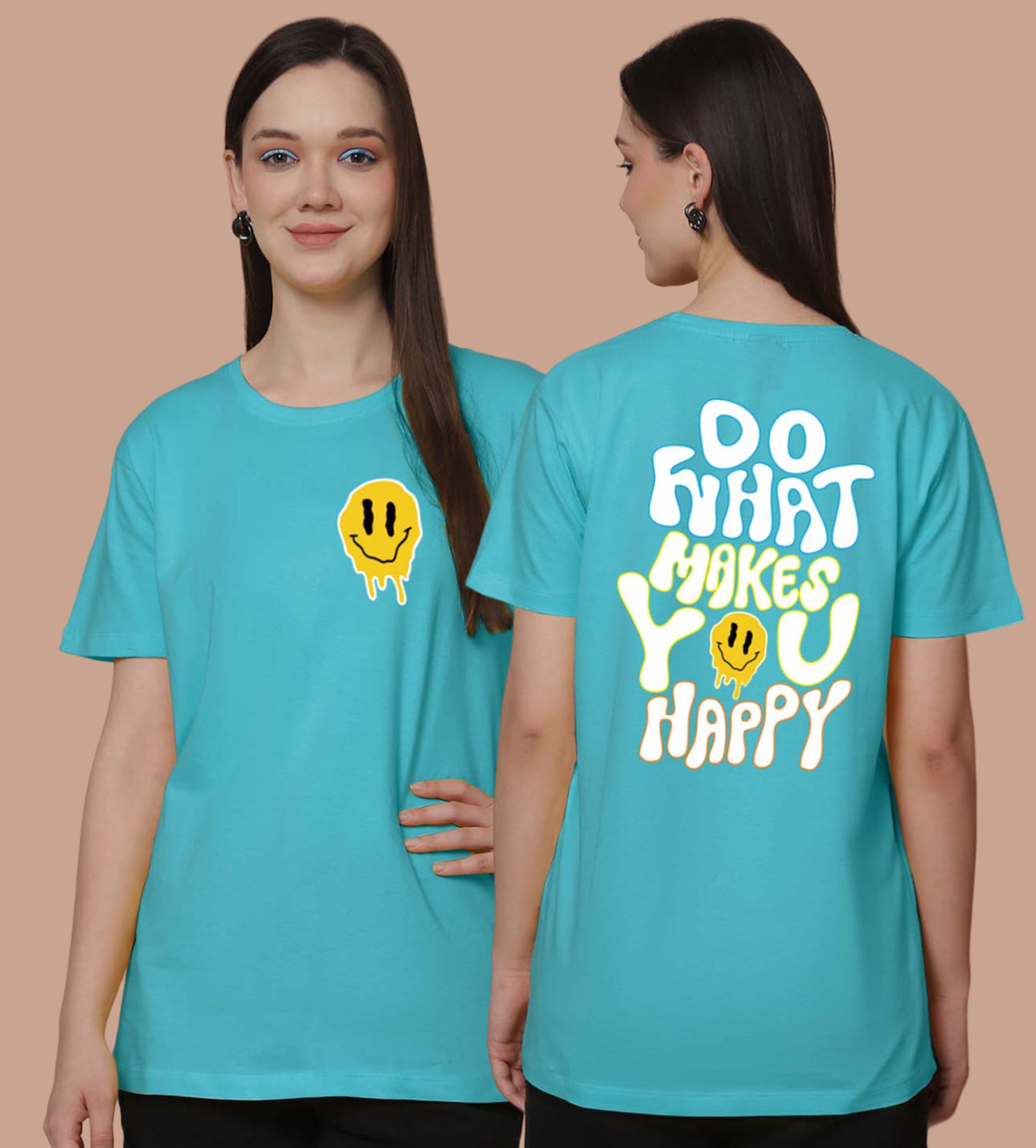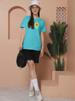 Friskers Women Smile Print Round Neck Half Sleeves Long T-Shirt