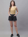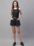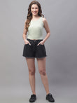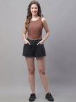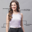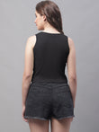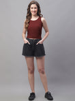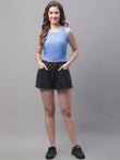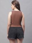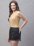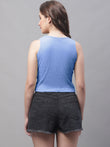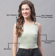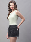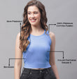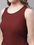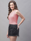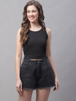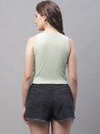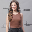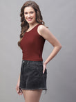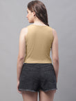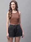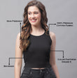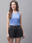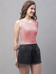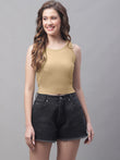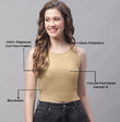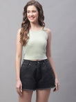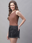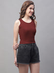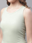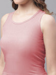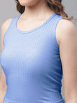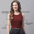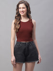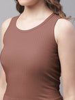 Friskers Women Solid Ribbed Round-Neck Crop Top, has a round neck, sleeveless