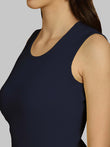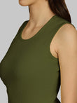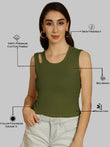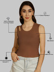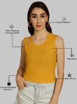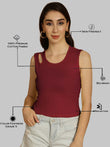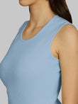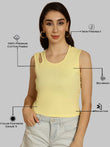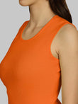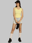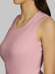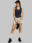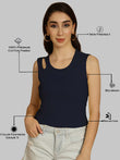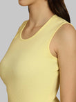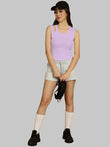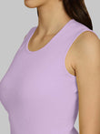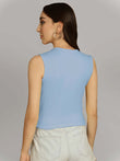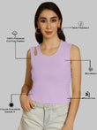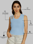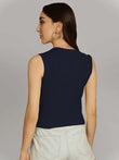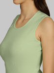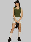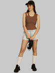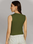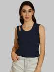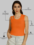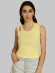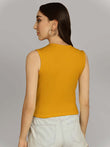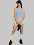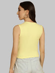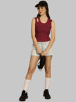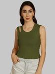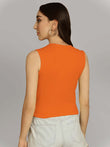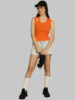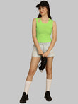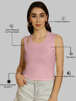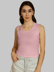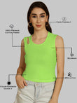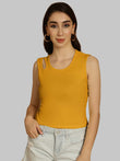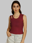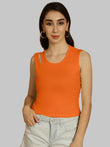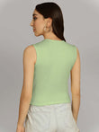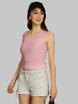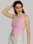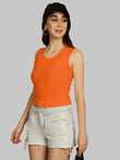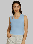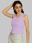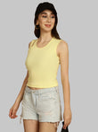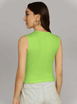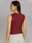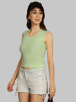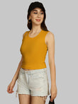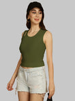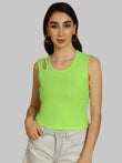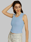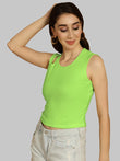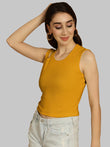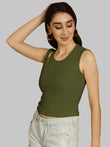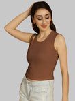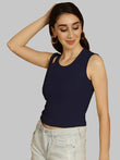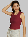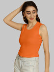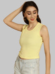 Friskers Women Solid Ribbed Round-Neck Crop Top, has a round neck, sleeveless