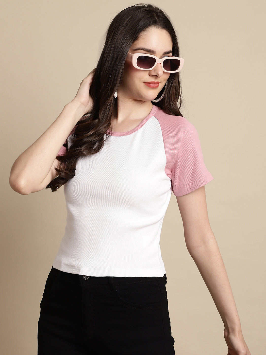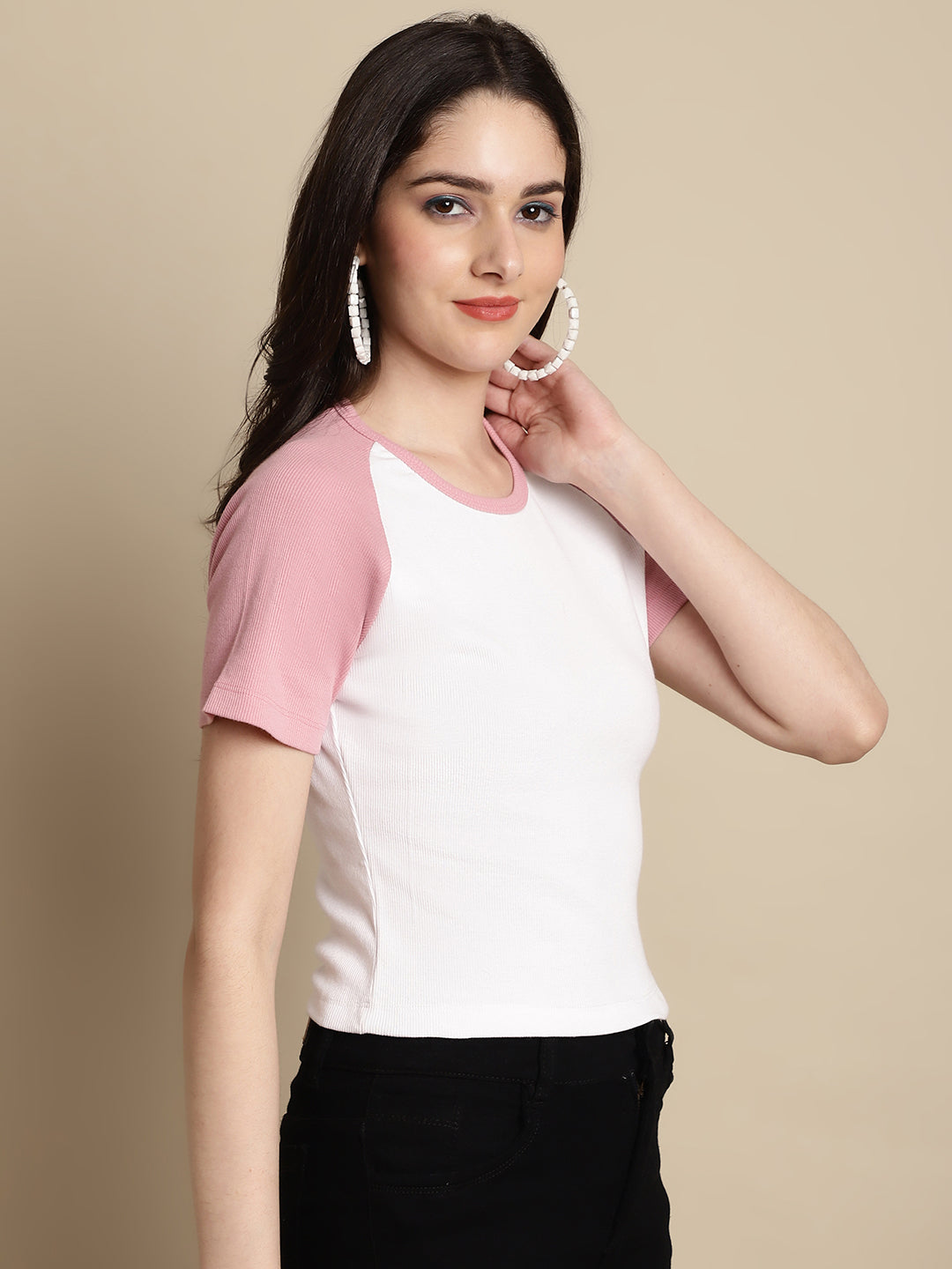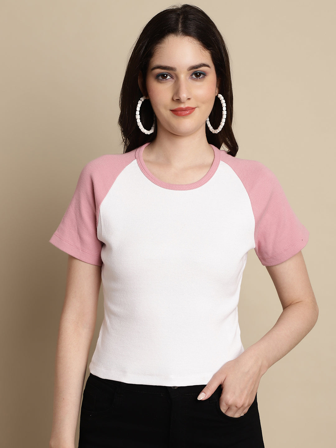 Friskers Women Solid Ribbed Round Neck Crop Top