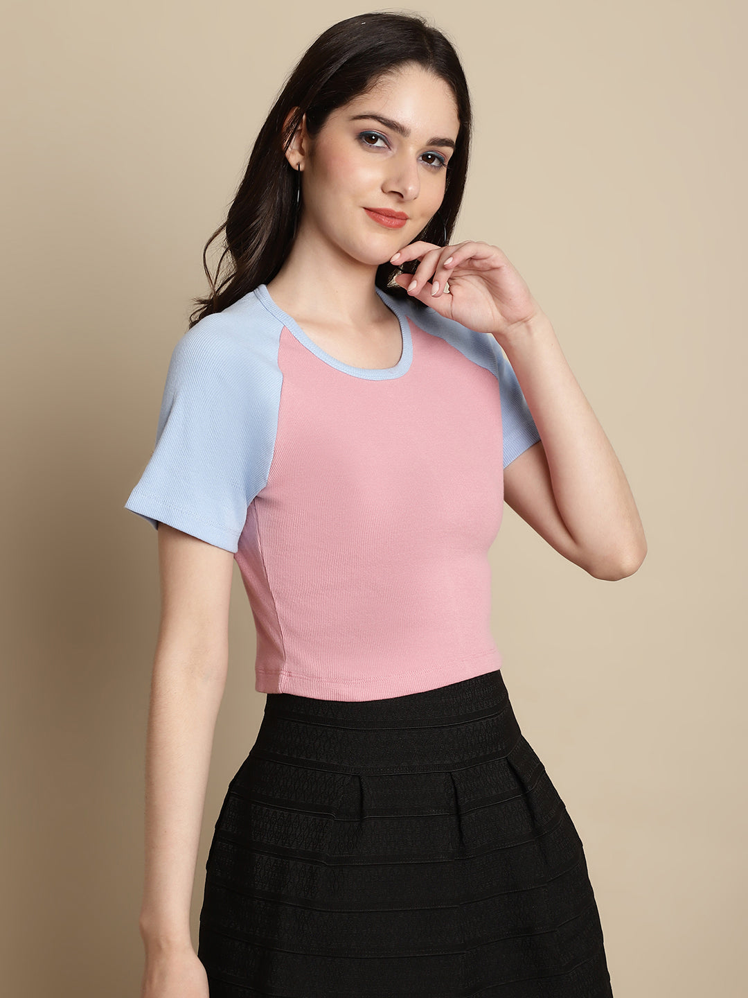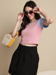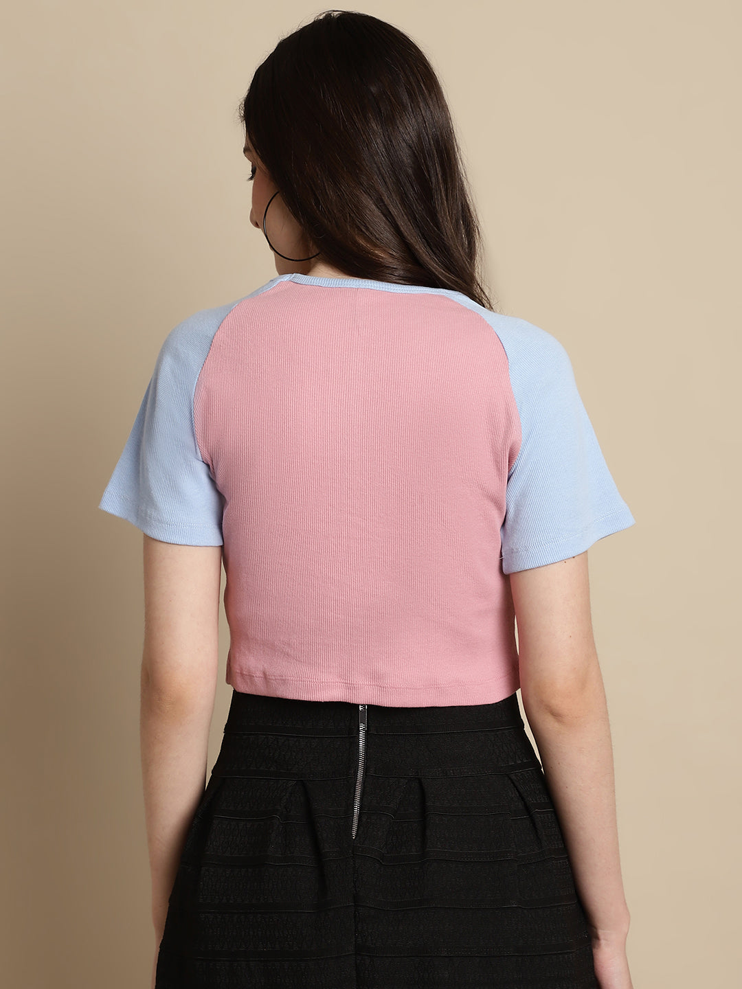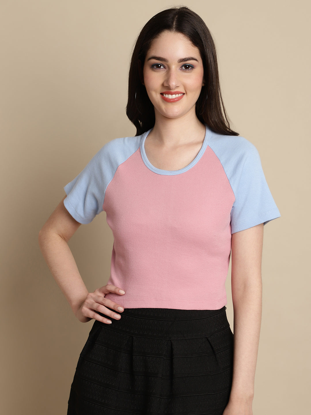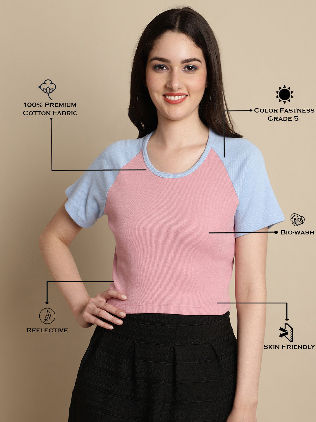 Friskers Women Solid Ribbed Round Neck Crop Top