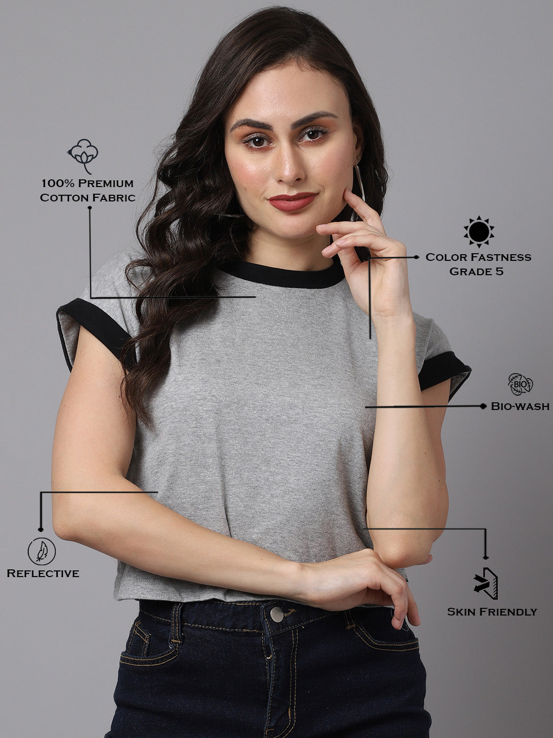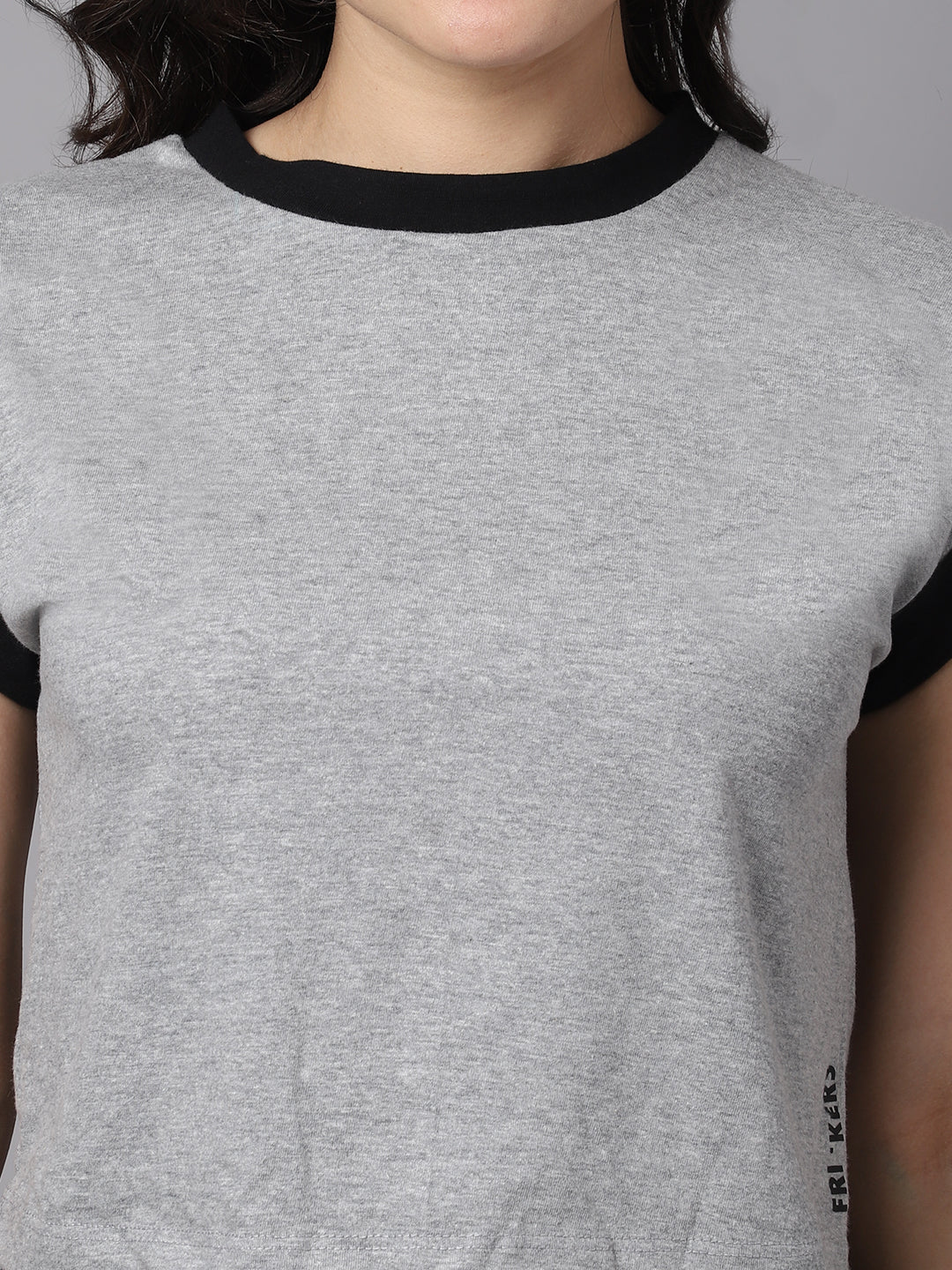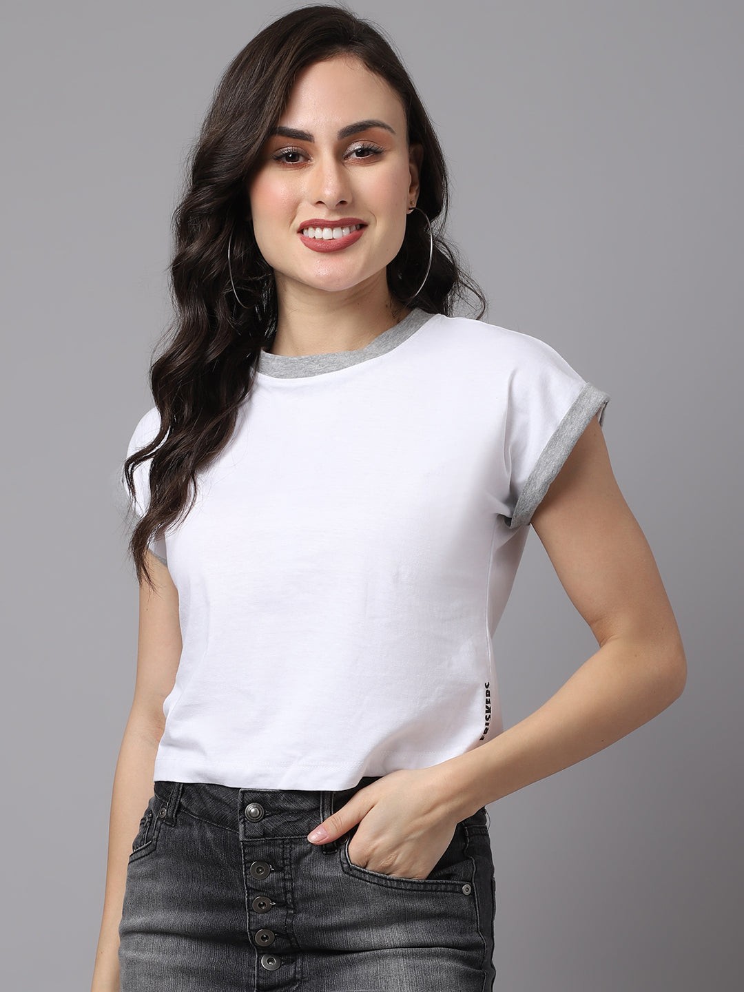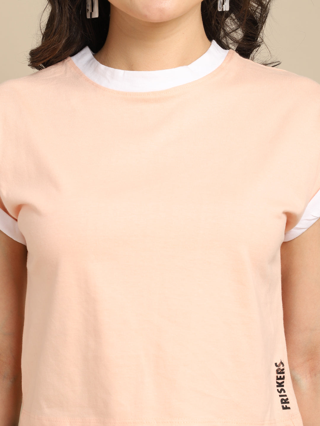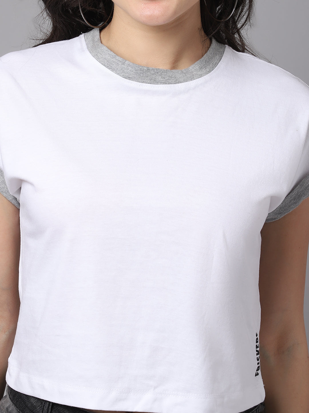 Friskers Women Solid Ribbed Round Neck Crop Top