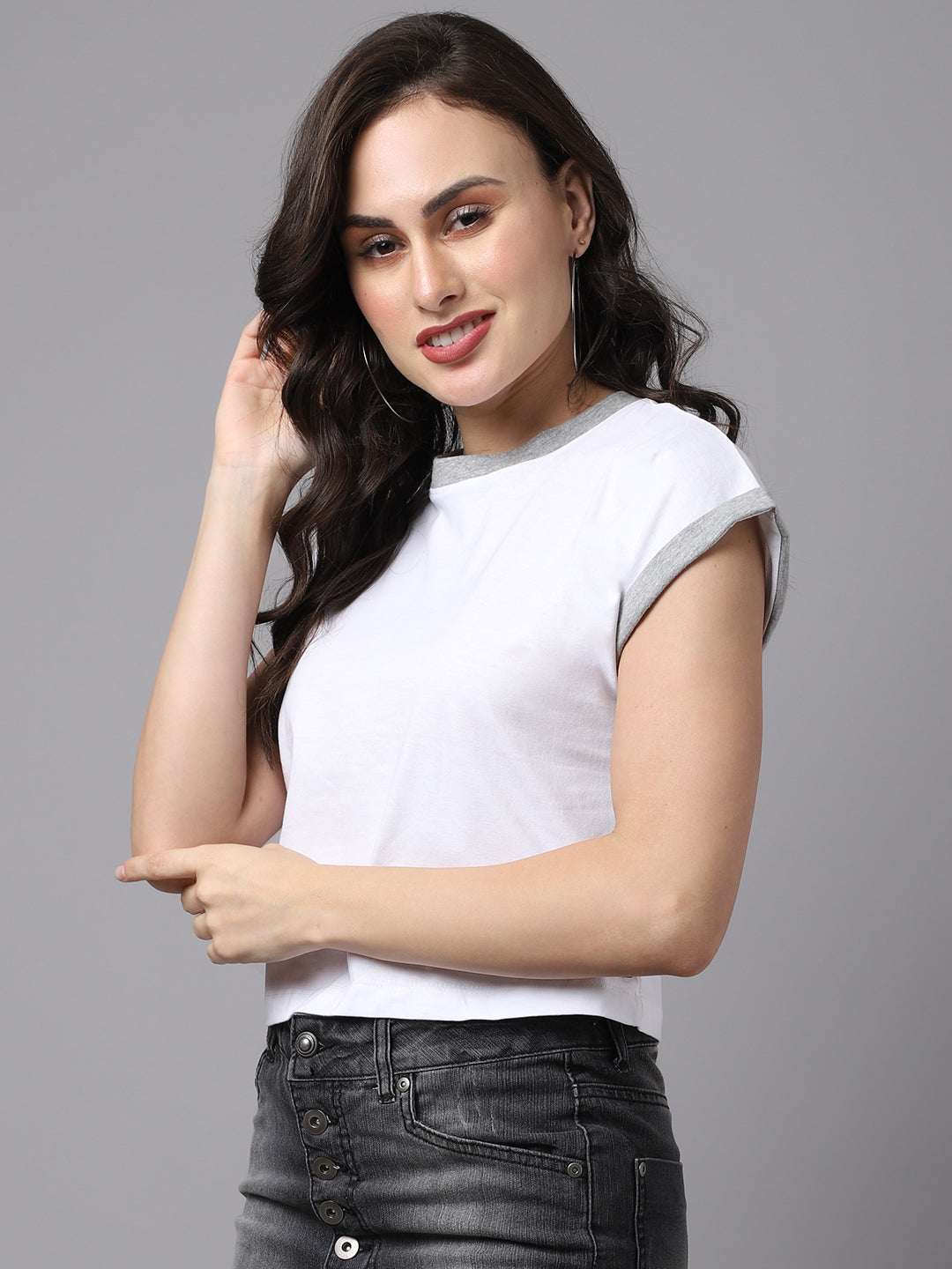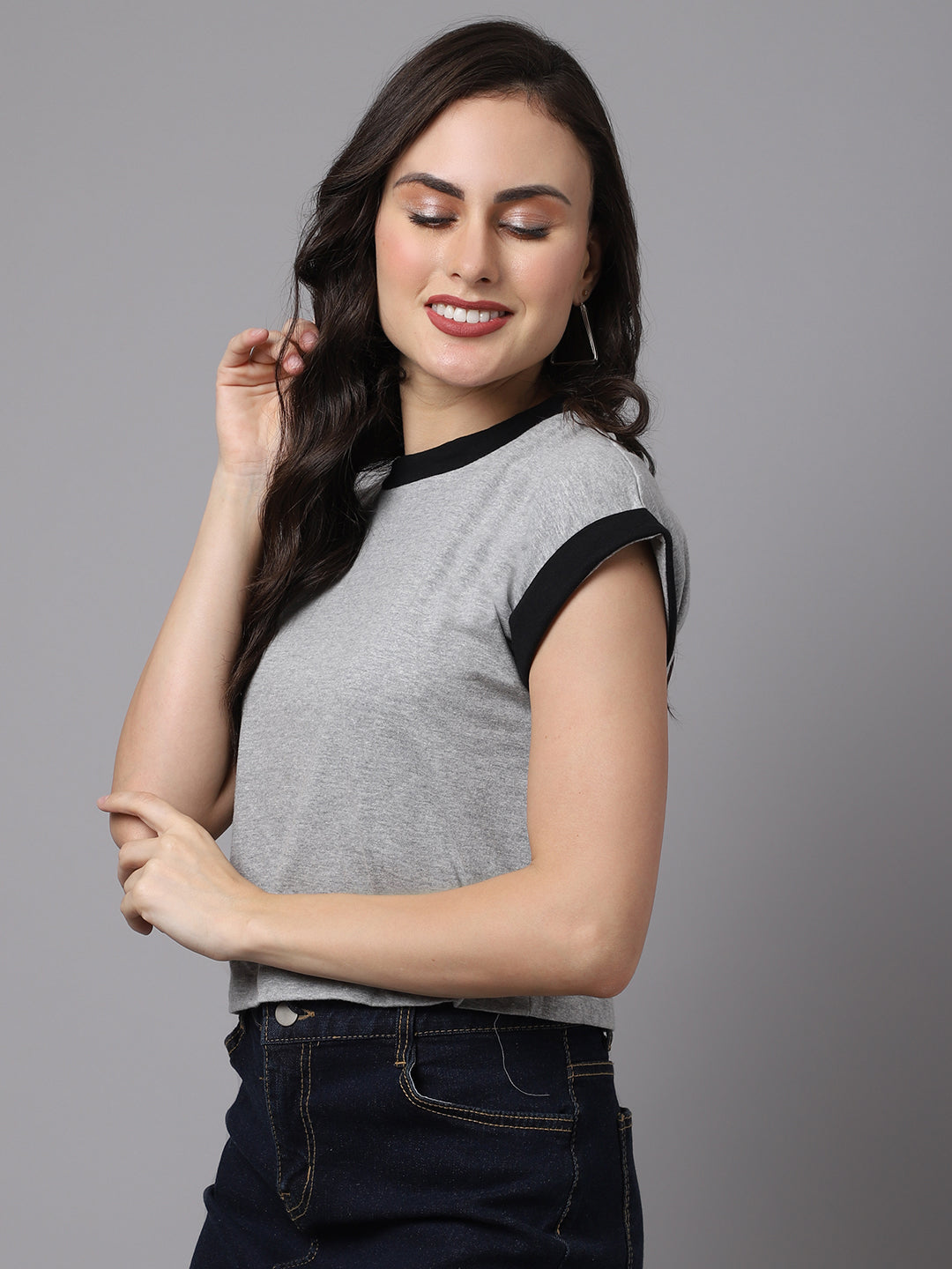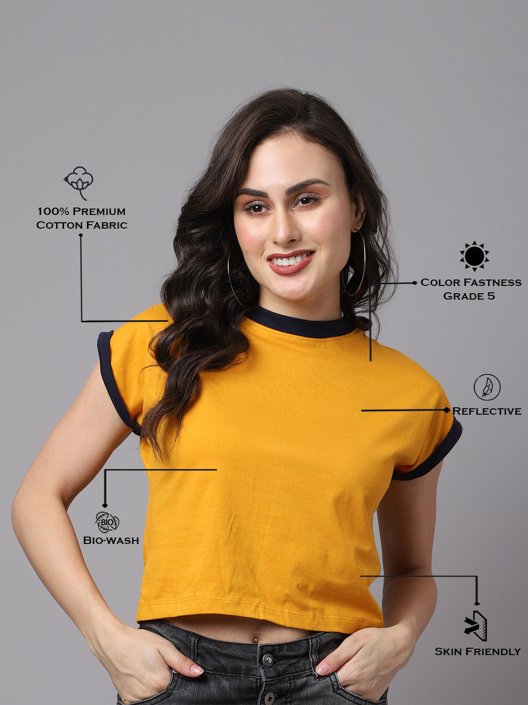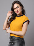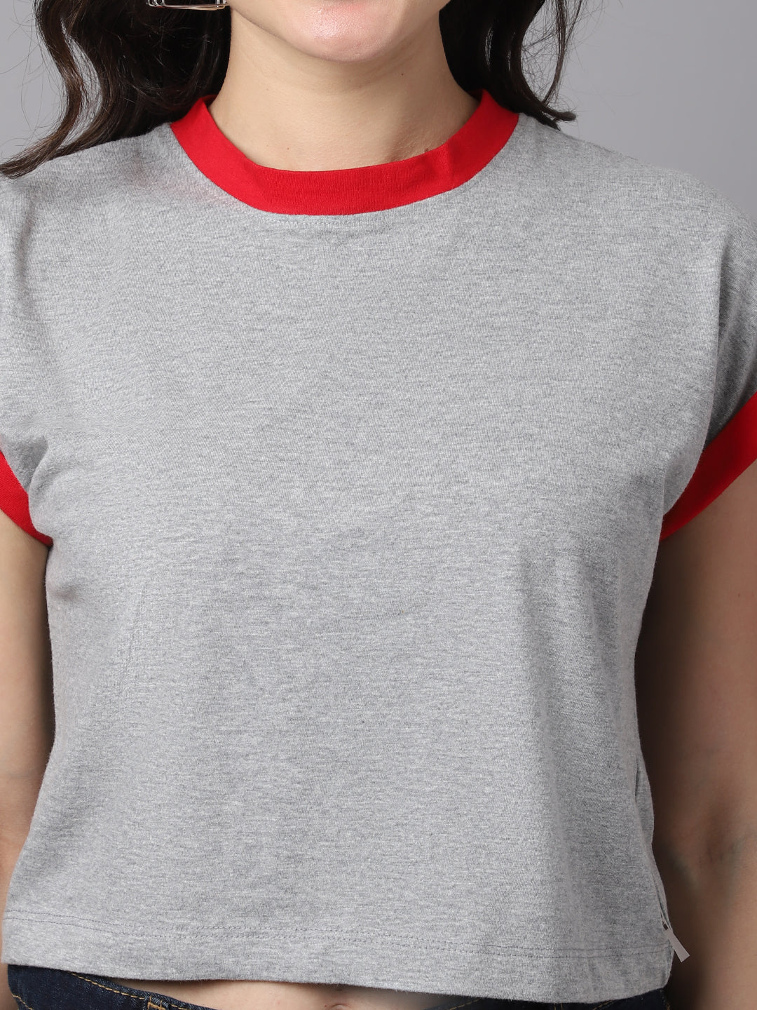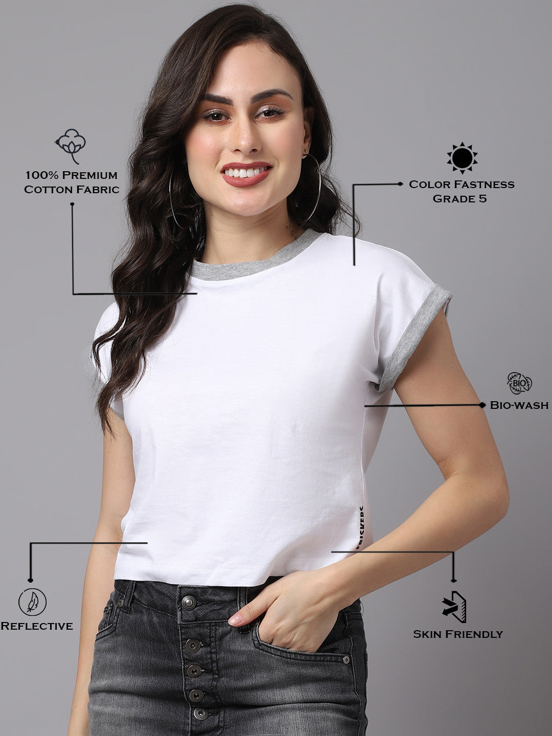 Friskers Women Solid Ribbed Round Neck Crop Top