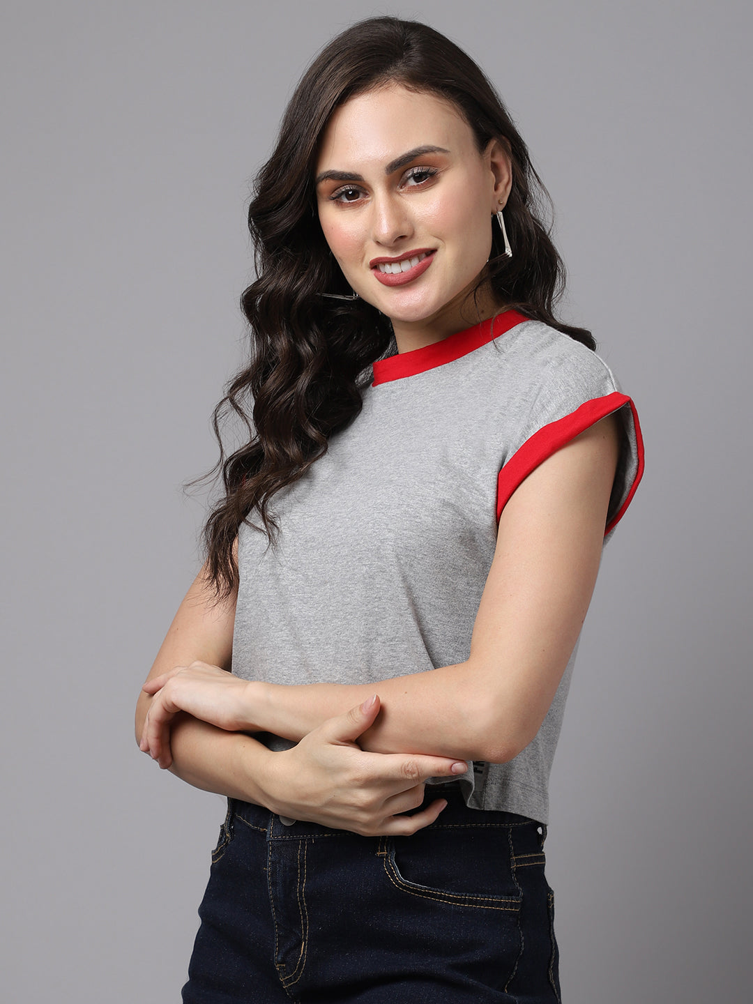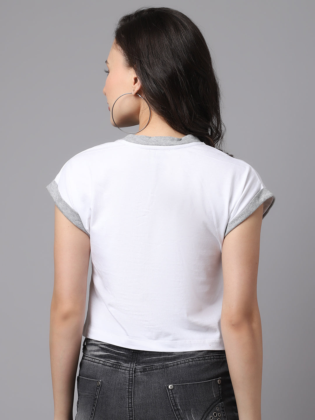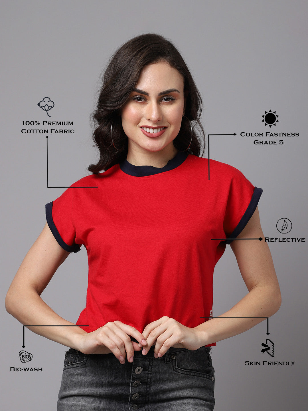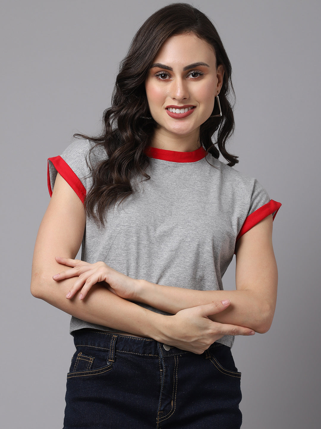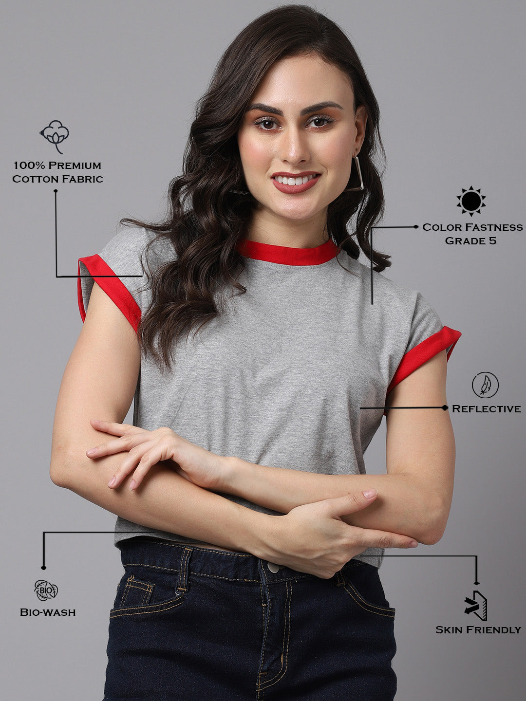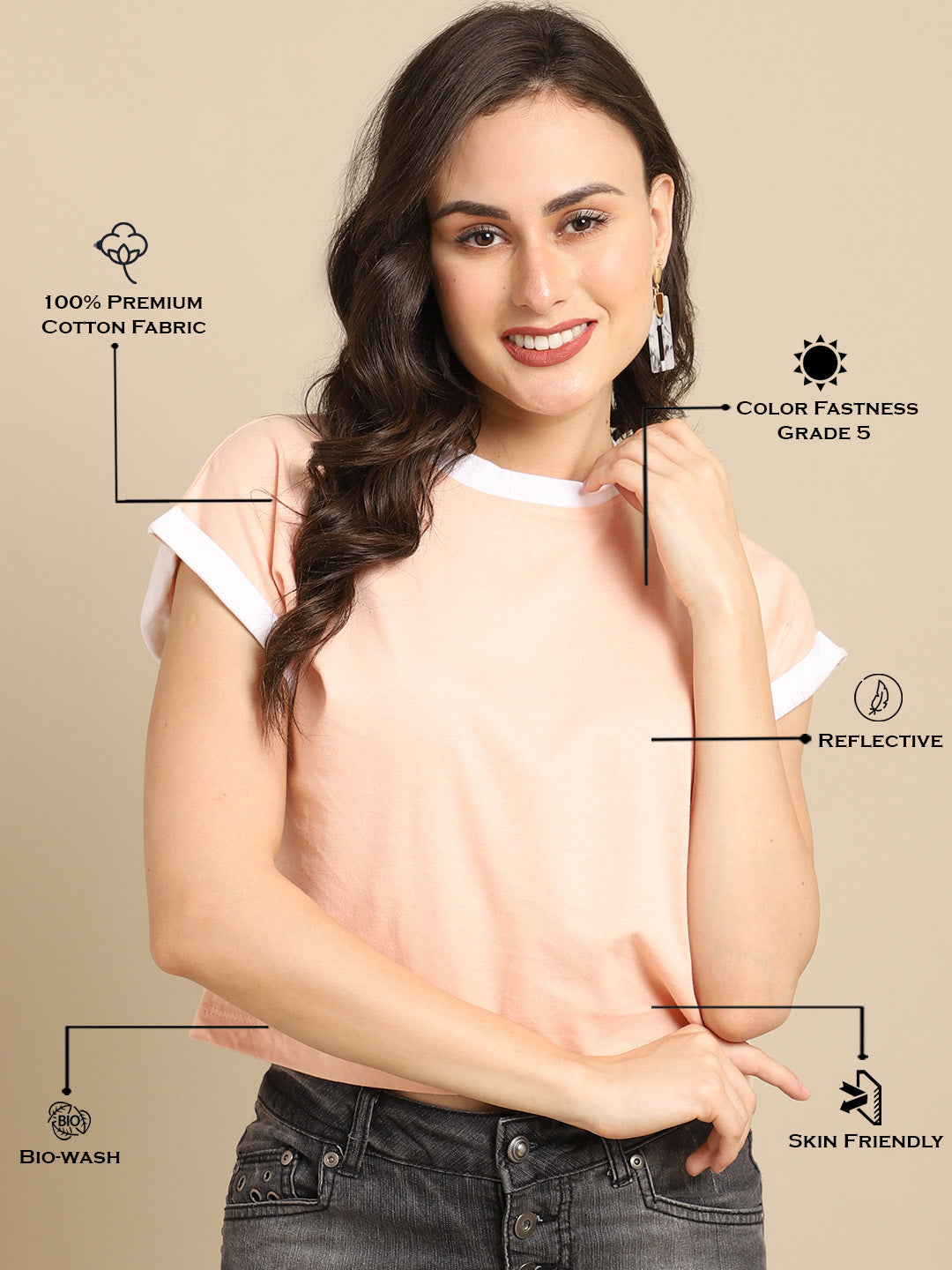 Friskers Women Solid Ribbed Round Neck Crop Top