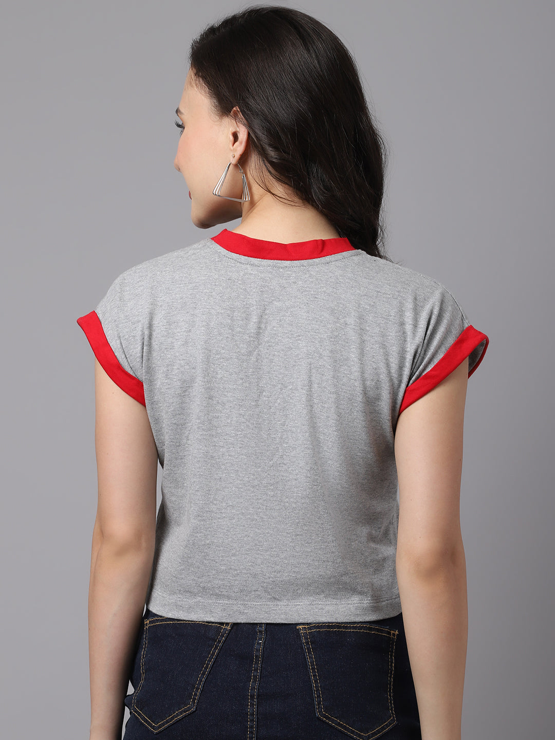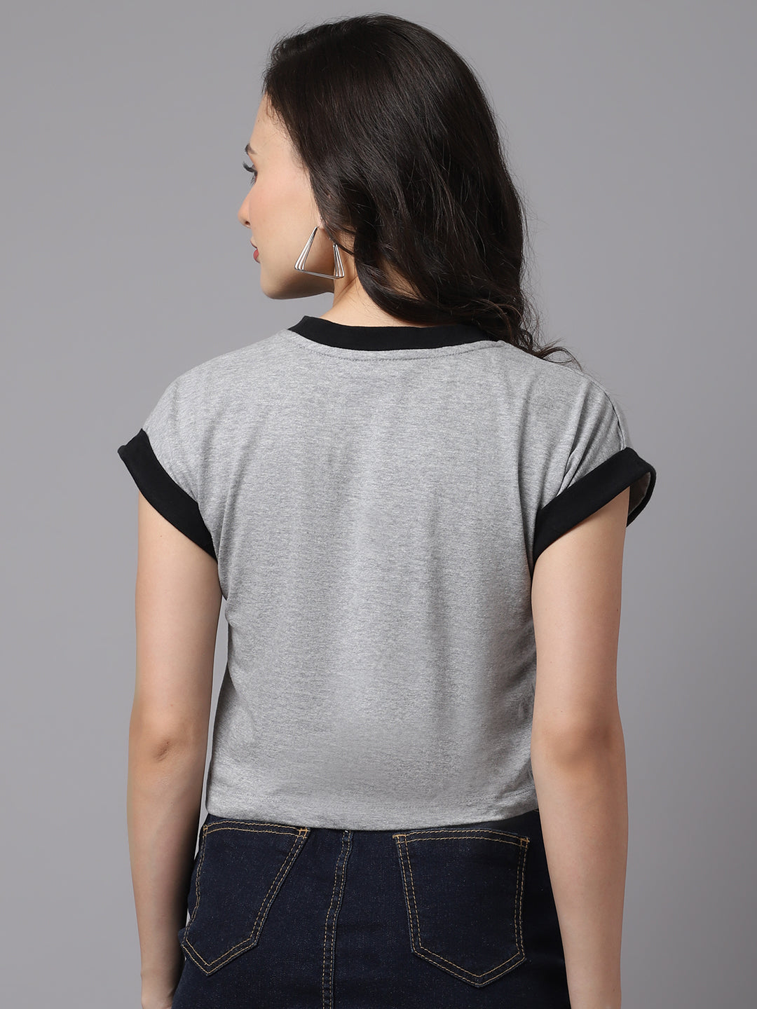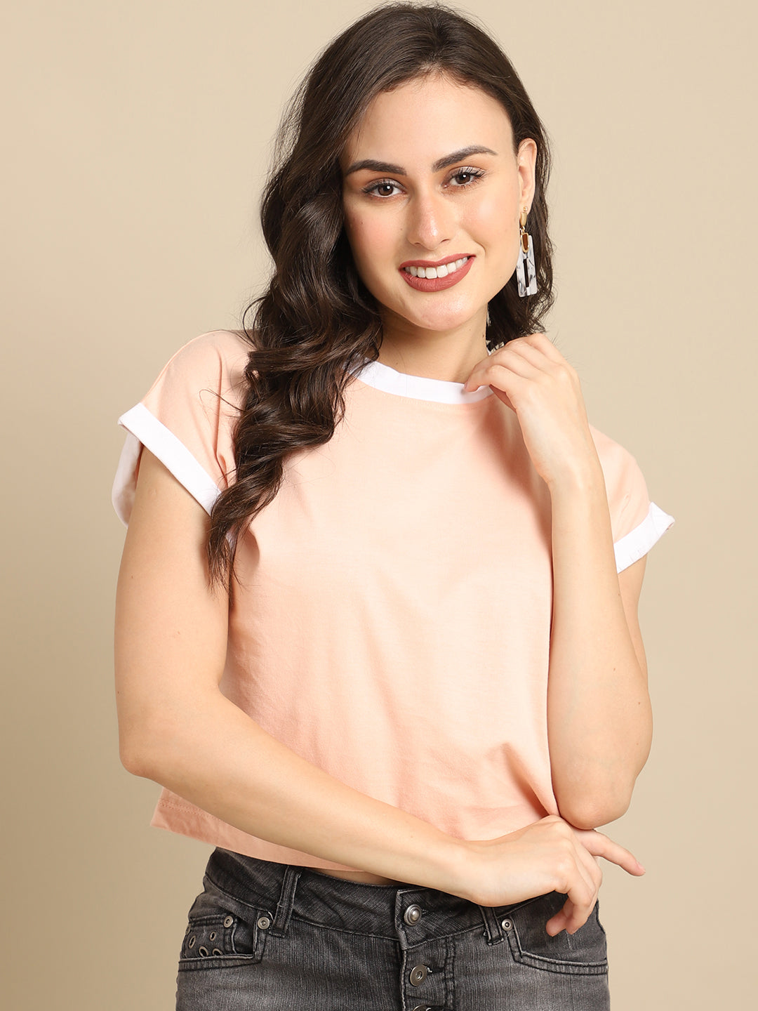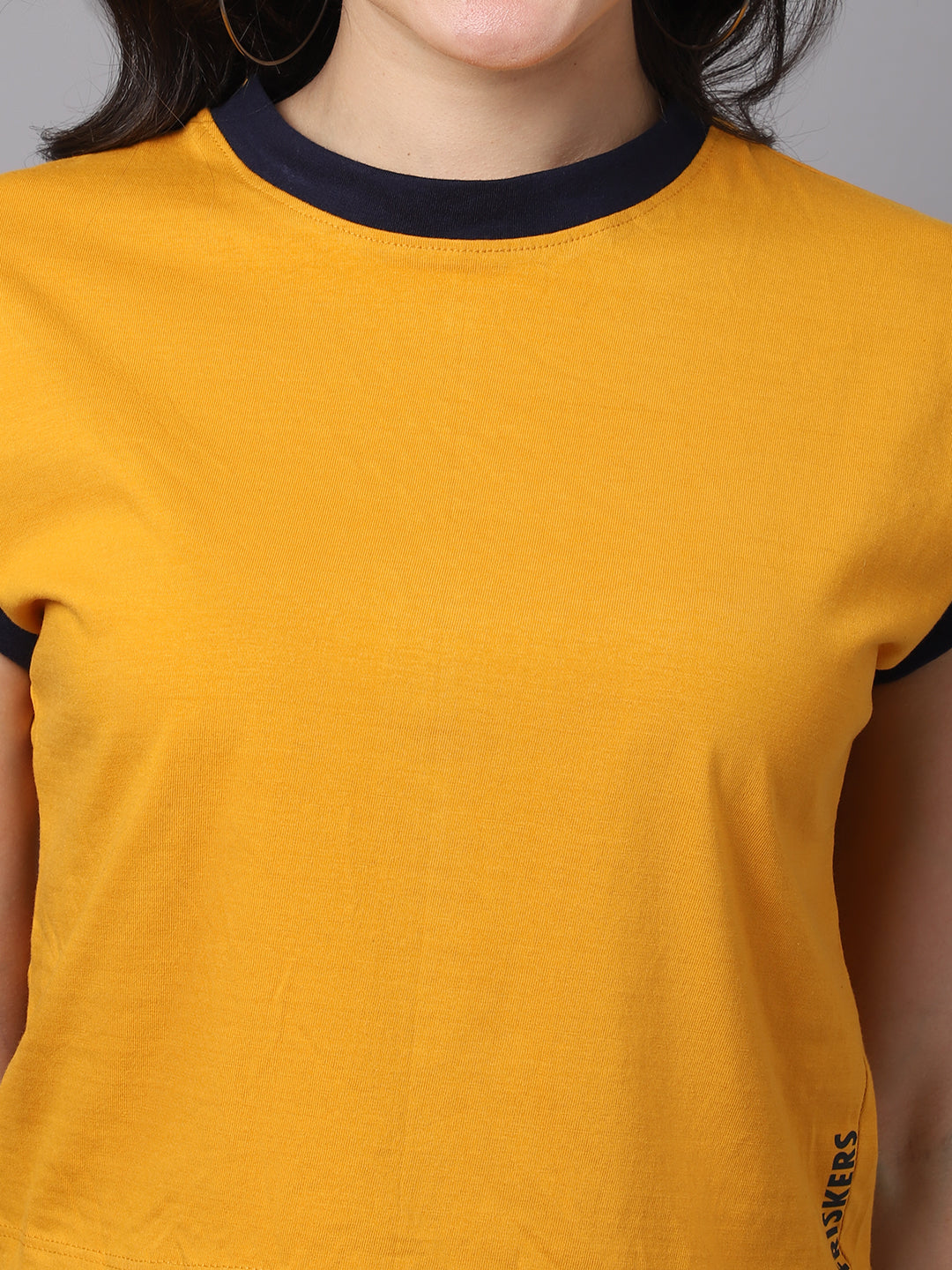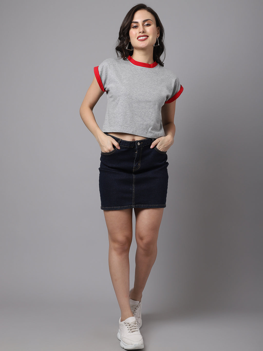 Friskers Women Solid Ribbed Round Neck Crop Top