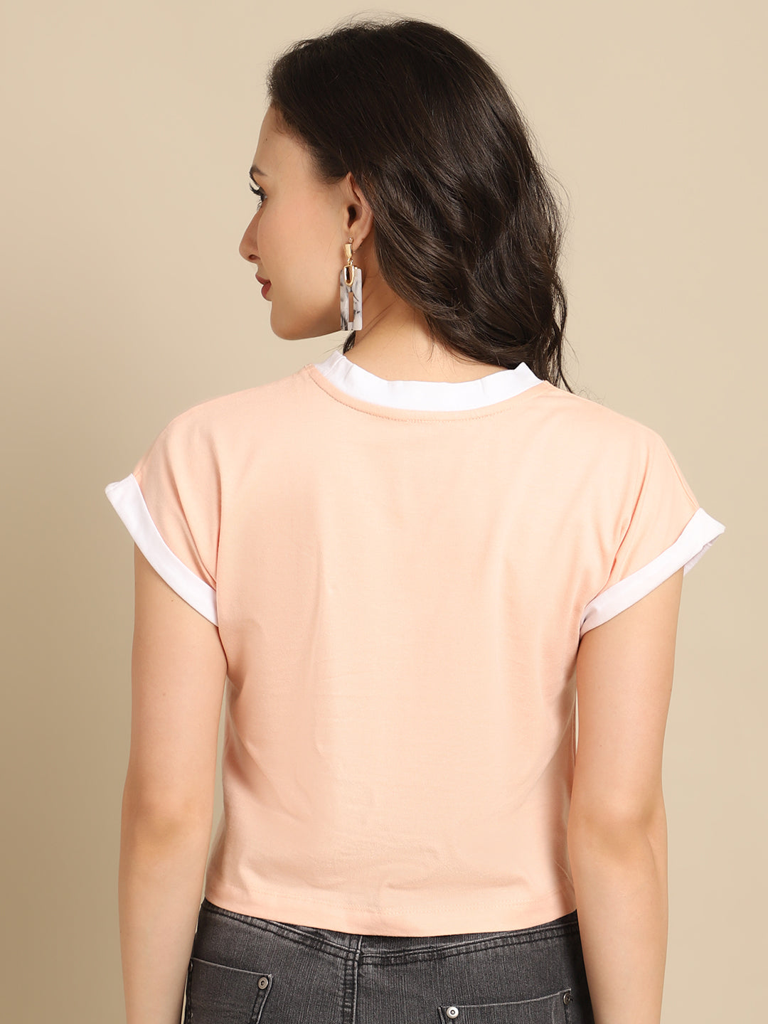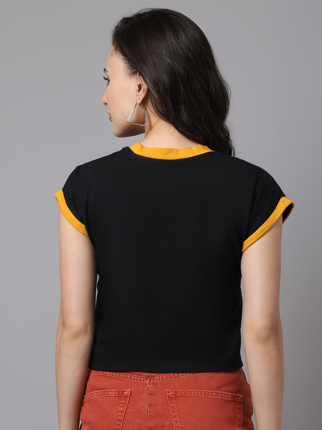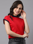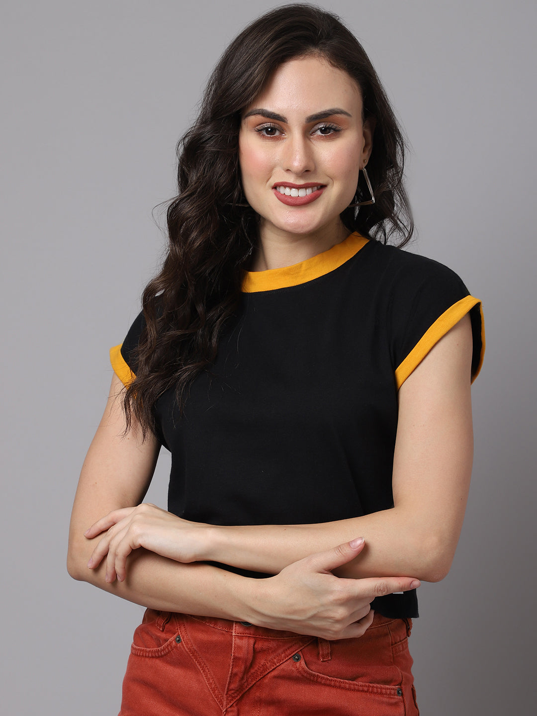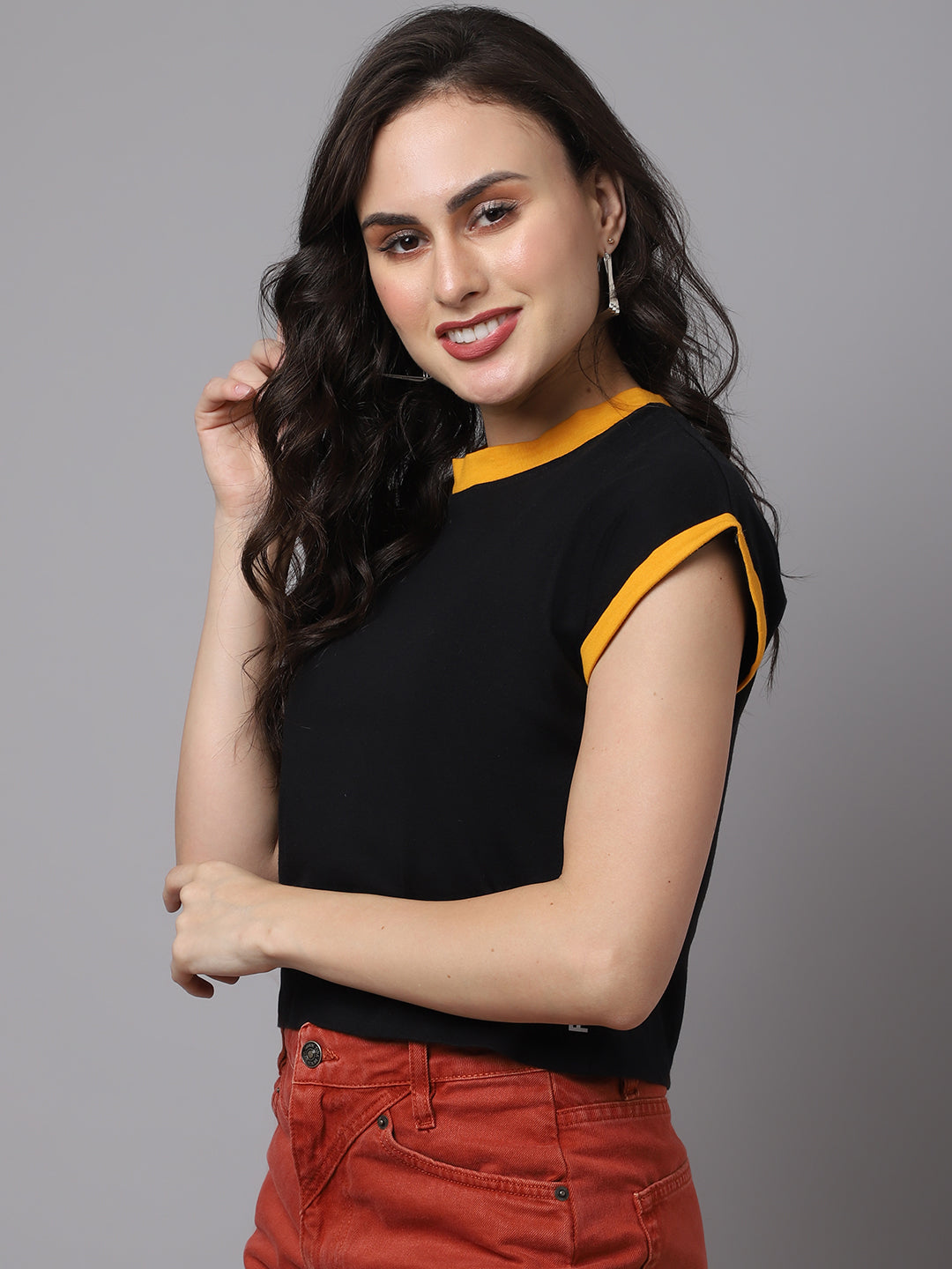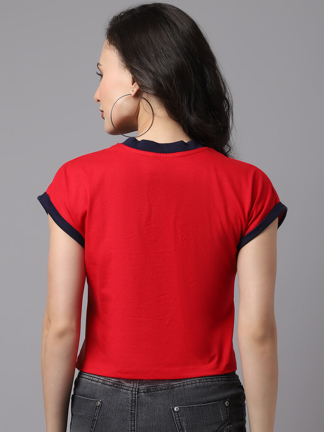 Friskers Women Solid Ribbed Round Neck Crop Top