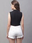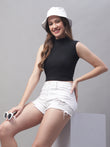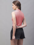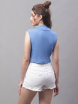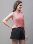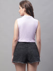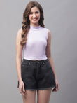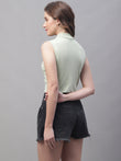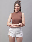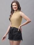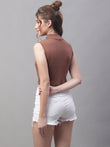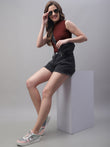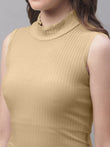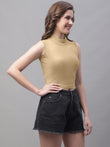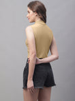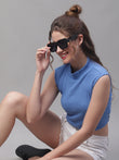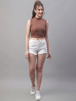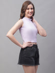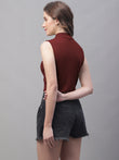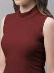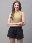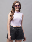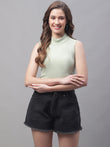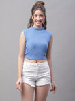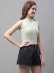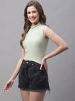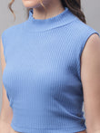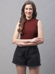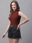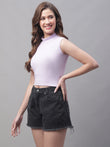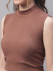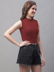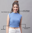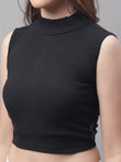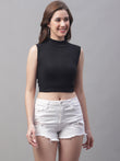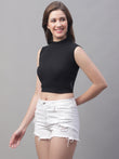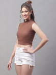 Friskers Women Solid Side Cut Crop Top, has a round neck, sleeveless