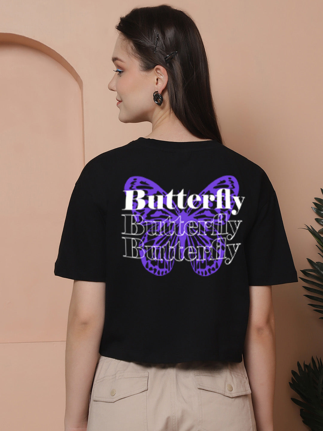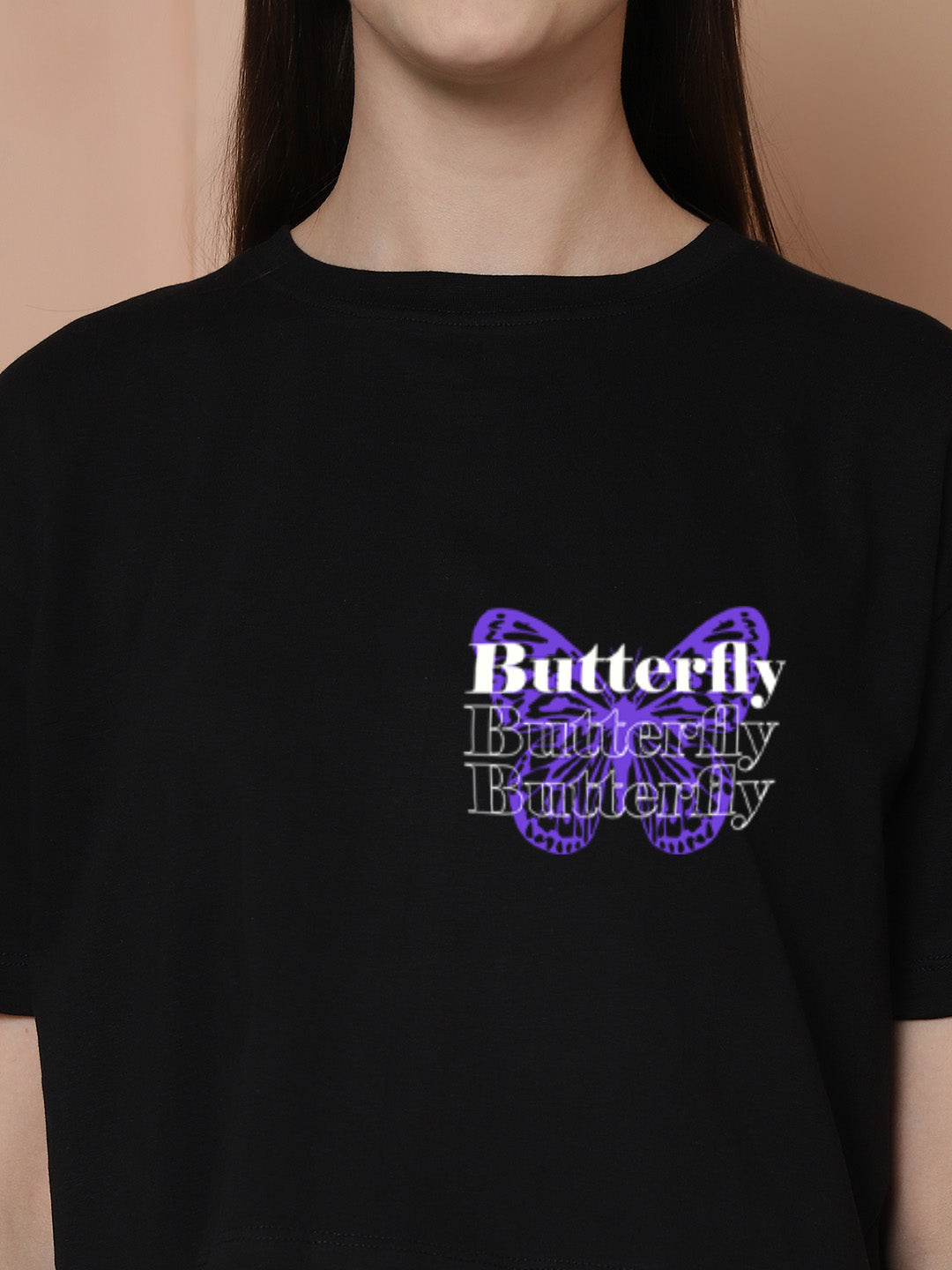 Friskers Women Butterfly Printed Round Neck Half Sleeves T-Shirt