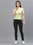 Friskers Women White High Neck Lettuce-Edge Rib Crop Top