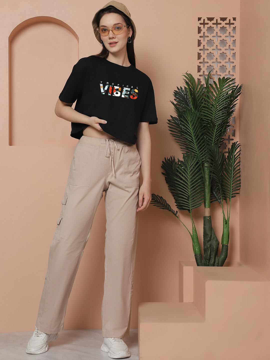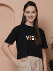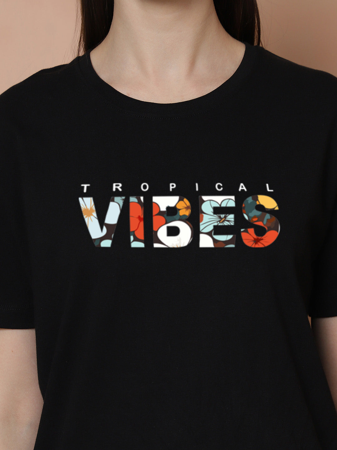 Friskers Women Tropical Vibes Printed Round Neck Half Sleeves T-Shirt