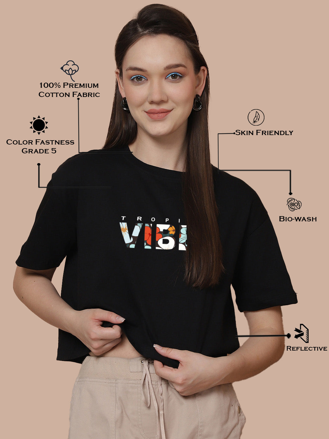 Friskers Women Tropical Vibes Printed Oversized Cotton Tshirt
