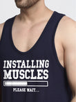 Installing Muscle Printed Innerwear drop cut gym vest, has a U-neck, sleeveless