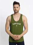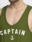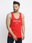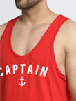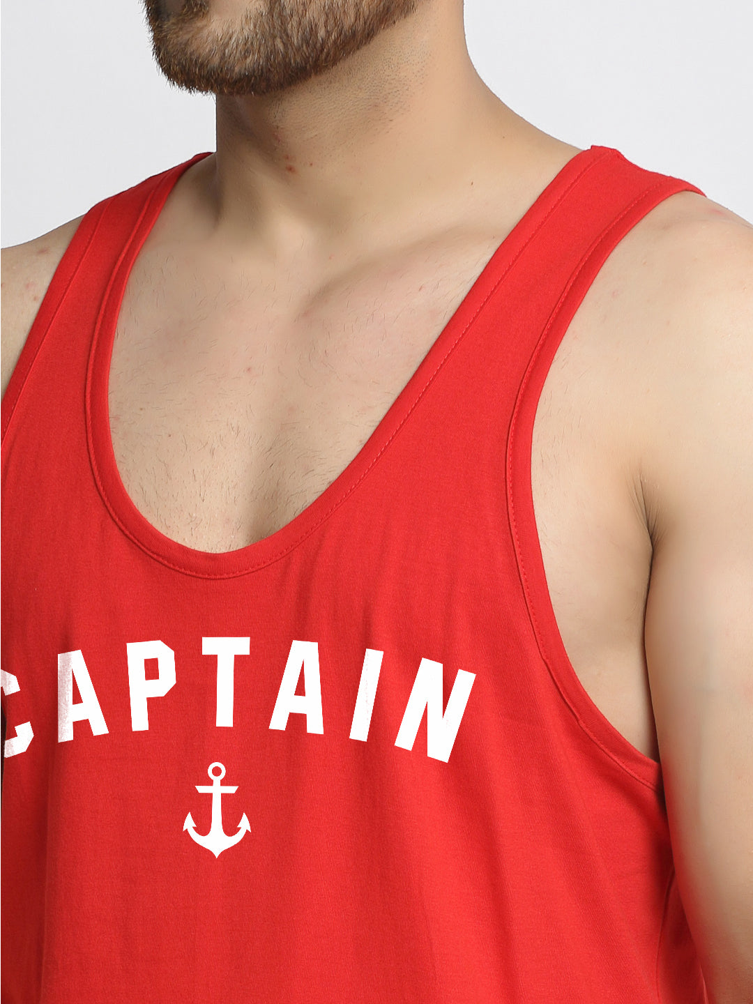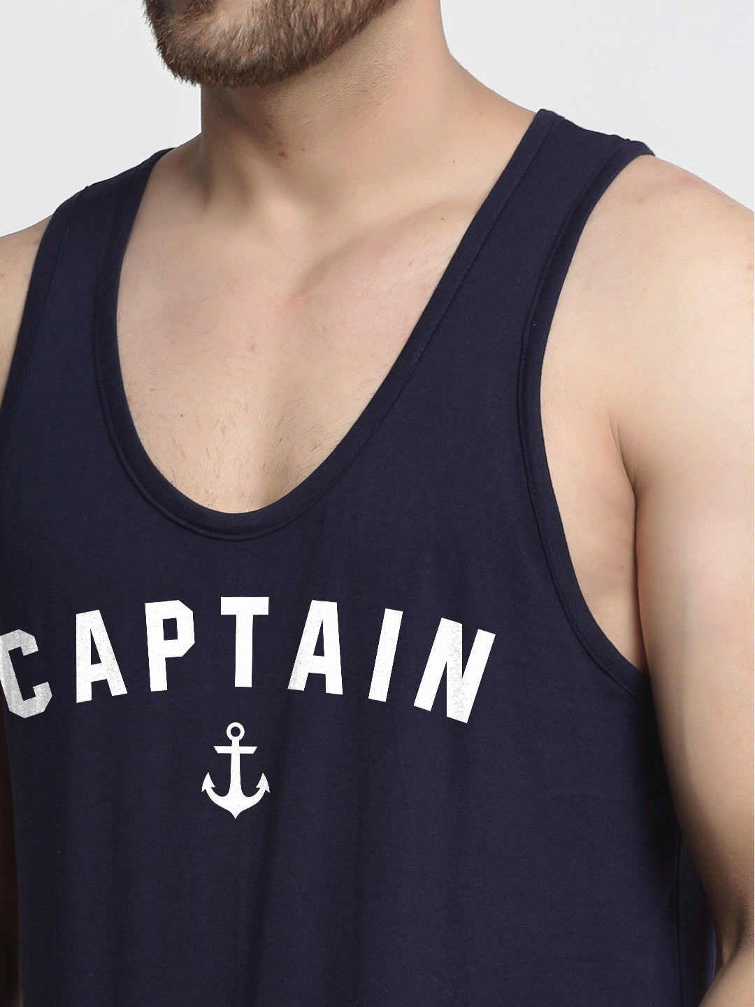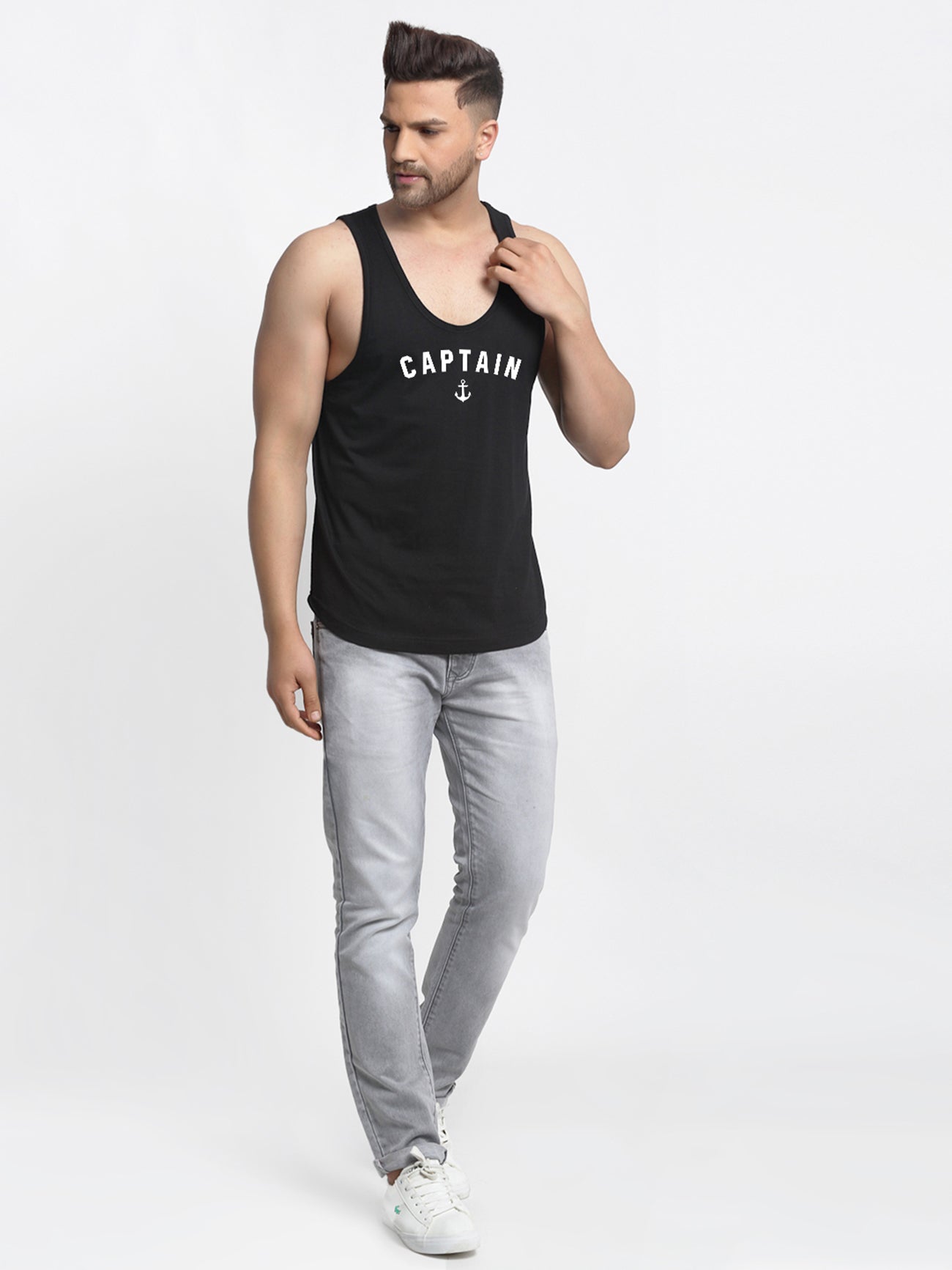 Men Captain Printed Black Innerwear drop cut gym vest, has a U-neck, sleeveless