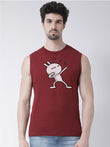 Friskers Maroon printed drop cut gym vest, has a round-neck, sleeveless