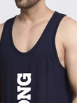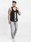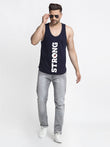 Men Strong Printed Innerwear drop cut gym vest, has a U-neck, sleeveless