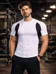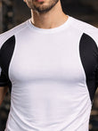 Mens White Round Neck Polyster Compression Gym Tshirt