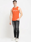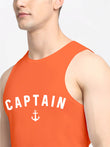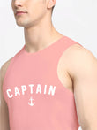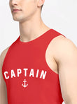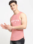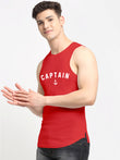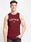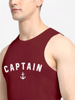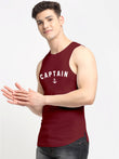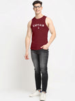 Friskers Maroon printed drop cut gym vest, has a round-neck, sleeveless
