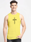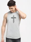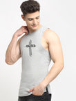 Men's Dry Fit Printed Round Neck Gym Vest has a round-neck, sleeveless