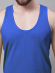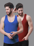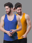 Men's Pack Of 2 Blue & Yellow Solid Pure Cotton Innerwear Gym Vest, has a round-neck, sleeveless