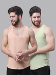 Men's Pack Of 2 Coral & Pista Solid Pure Cotton Innerwear Gym Vest