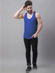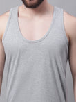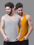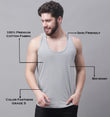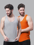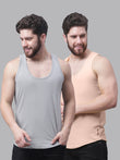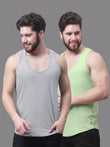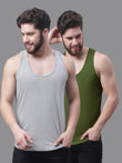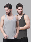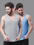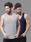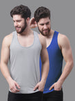 Men's Pack Of 2 Grey & Blue Solid Pure Cotton Innerwear Gym Vest, has a round-neck, sleeveless
