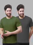 Men's Pack Of 2 Olive Green & Solid Grey Pure Cotton Half Sleeve T-shirt