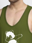 Men's Pack of 2 Olive Green & Yellow Printed Gym vest